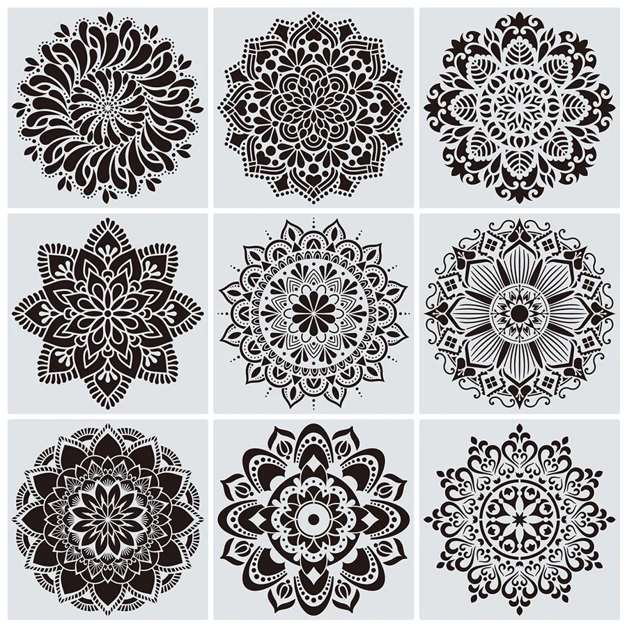 Пластиковые трафареты 9 шт.упак. 12*12 дюймов с мандалой для украше...