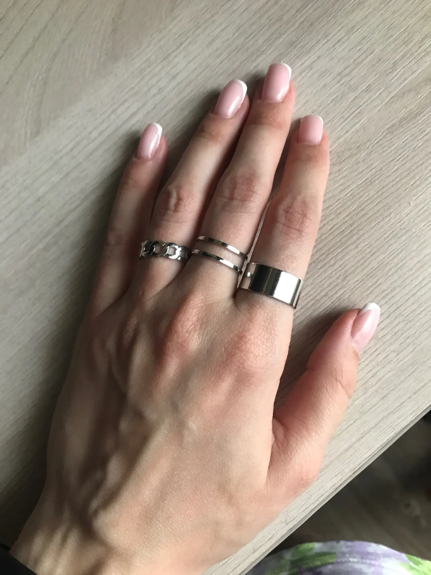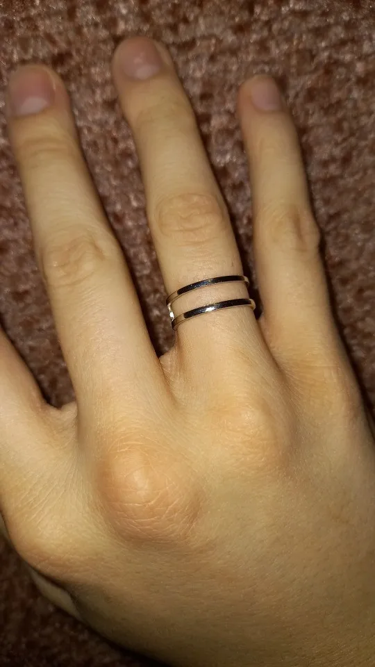пришли кольца. что могу сказать из плюсов цена и то, что можно регулировать - у меня забрали мама и парень по одному кольцу - если руки будут потеть (а они будут), то остаётся след не красивый на пальцах - для постоянного ношения не подойдет - покрытие будет стираться