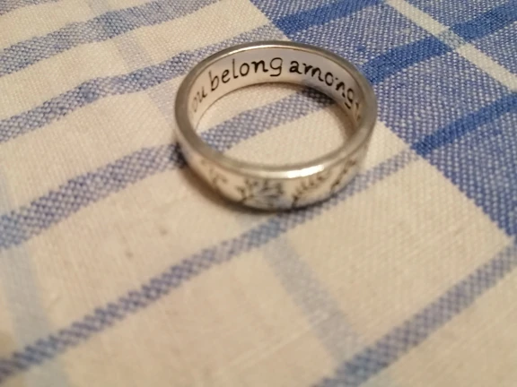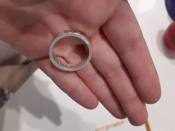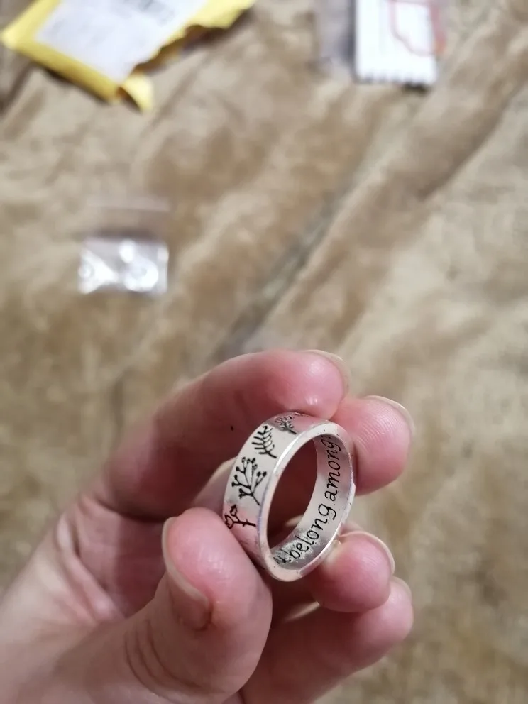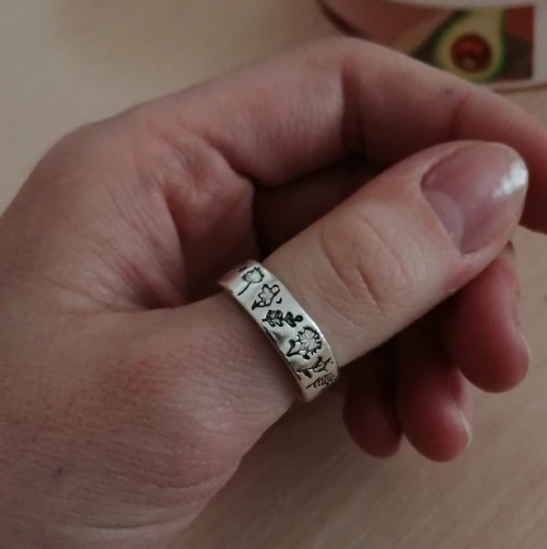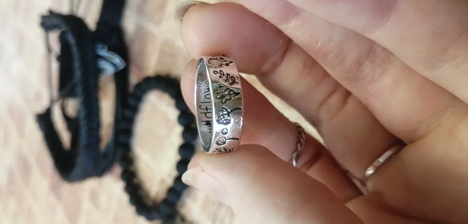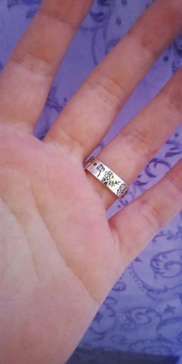 Милое кольцо, вы можете увидеть все детали очень хорошо, текст внутри четкий и читаемый. Купил для моей дочери-подростка, и, оказывается, он также входит в ее список желаний Aliexpress... Ей нравится!