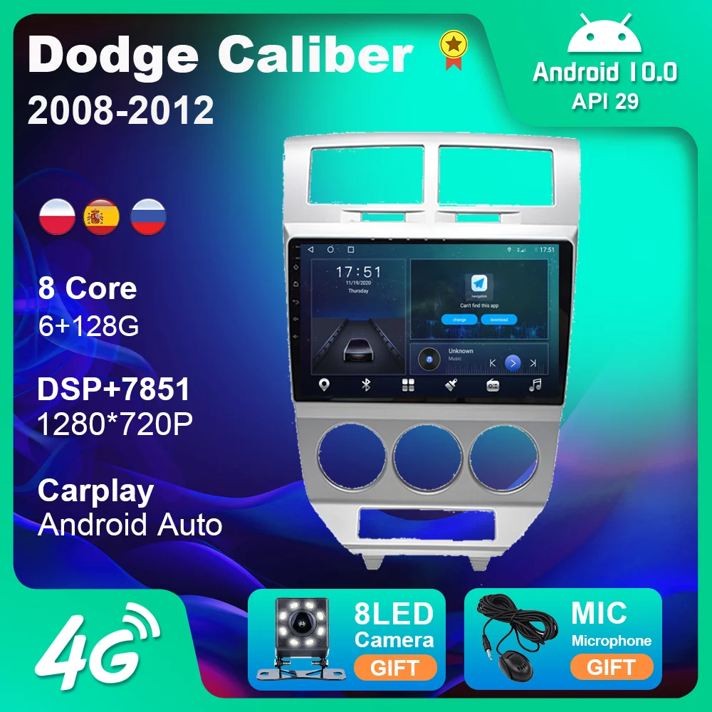 Автомобильный радиоприемник для Jeep Dodge Caliber 2008-2012 Android, Авторадио, стерео, мультимедийный DVD-плеер, навигация GPS, 2din Carplay, 10 дюймов