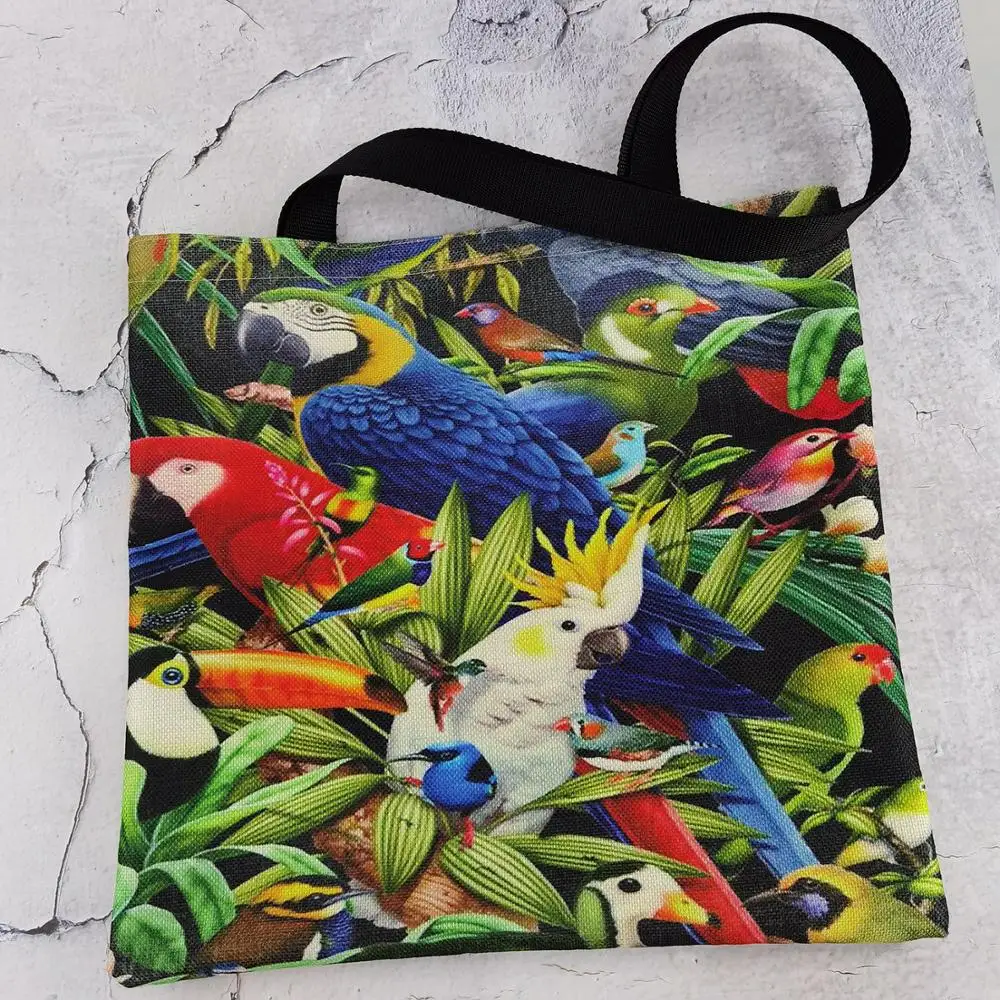 Вместительная Льняная сумка ярких цветов, милая сумка-тоут с принтом попугая для женщин, персонализированные женские сумки для покупок 2020 горячая распродажа