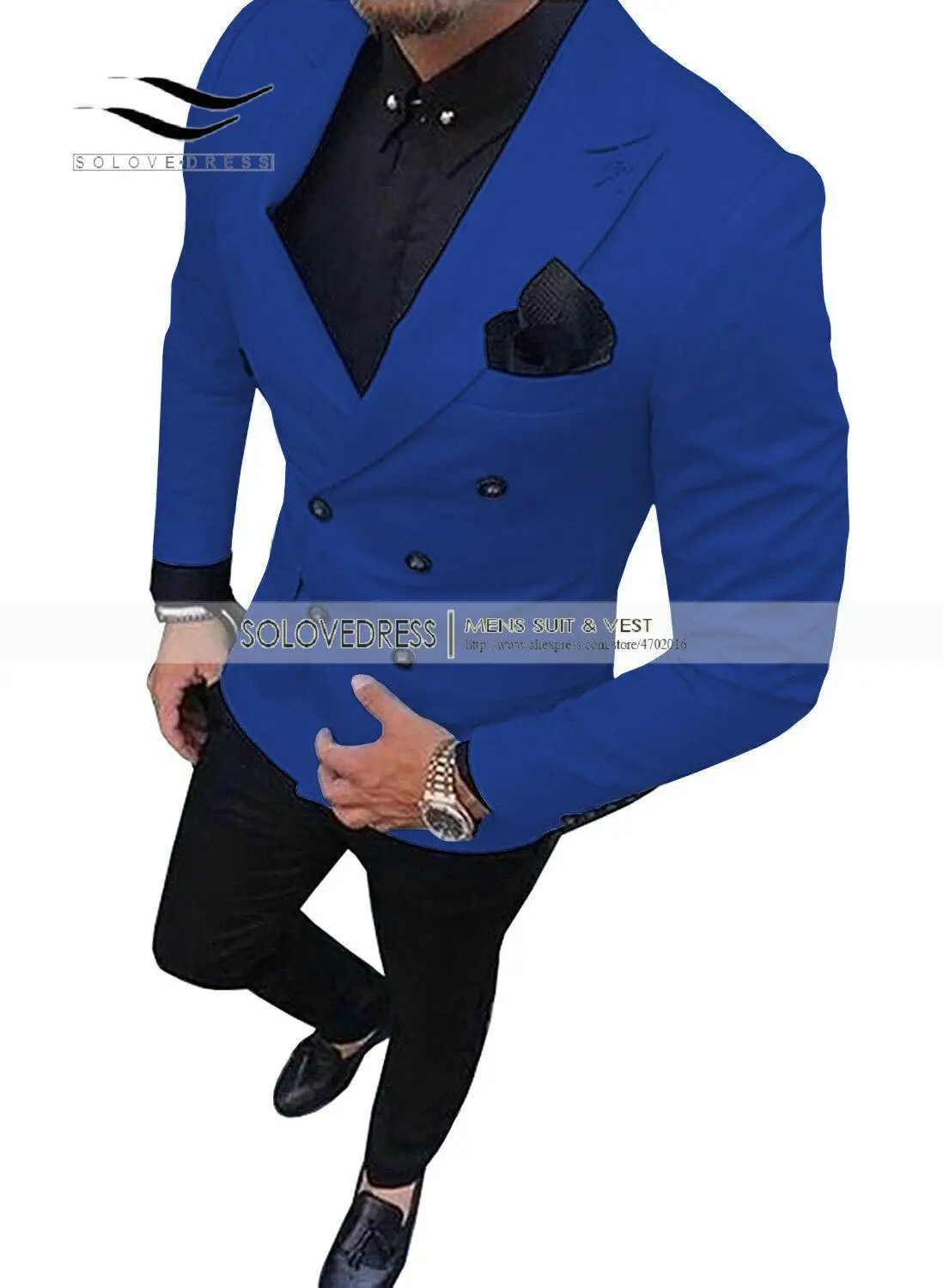 Мужские облегающие костюмы VEIAI, темно-синие двухбортные смокинги ...