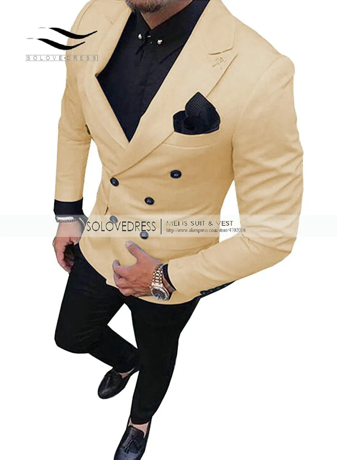 Мужской костюм из 2 предметов, бежевый костюм с двубортным воротник...
