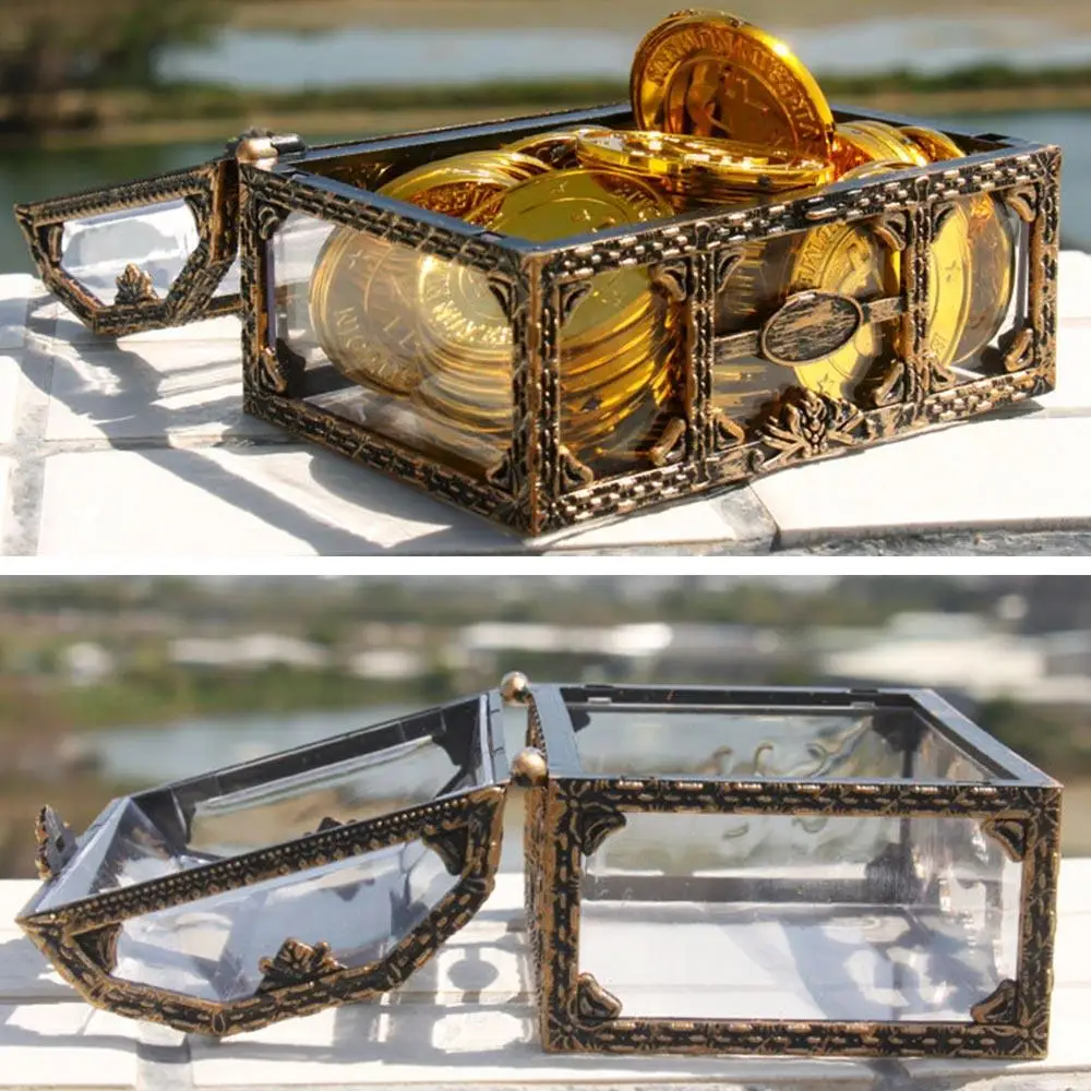 Миниатюрный ящик для хранения монет с пиратским дизайном, коробка для хранения ювелирных изделий, металлический замок, сундук с сокровищами, красивый прозрачный пластиковый орнамент