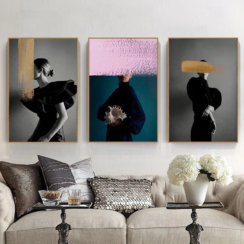 Абстрактная картина маслом в скандинавском стиле для женщин, холст с принтом, украшение для дома, без рамки, для гостиной, спальни, роспись