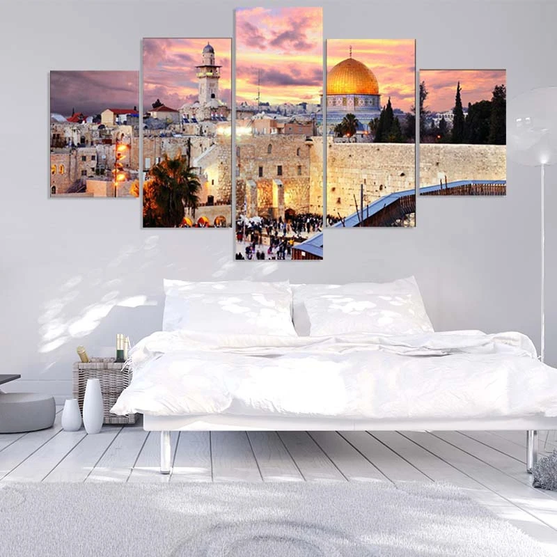 Картина на холсте, современные настенные картины, домашний декор, модульные плакаты из 5 предметов с изображением пейзажа заката и заката, HD печатная рамка