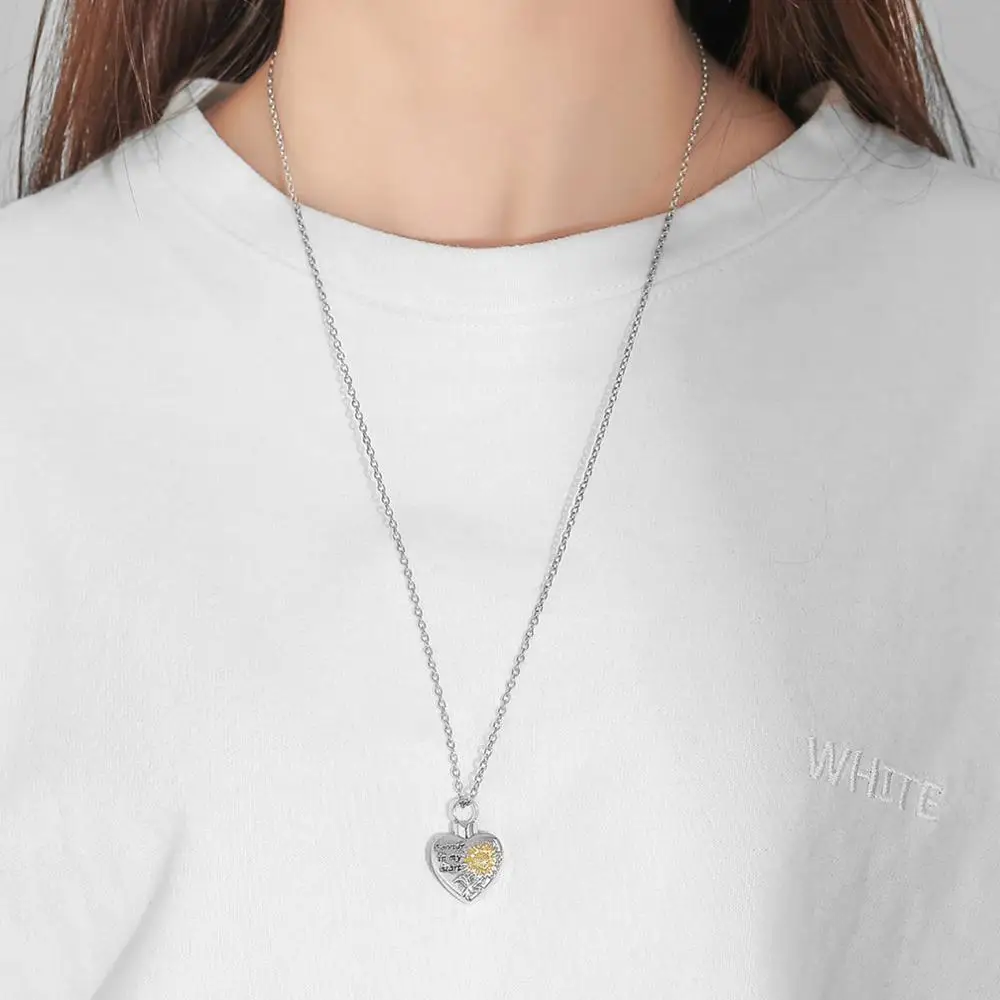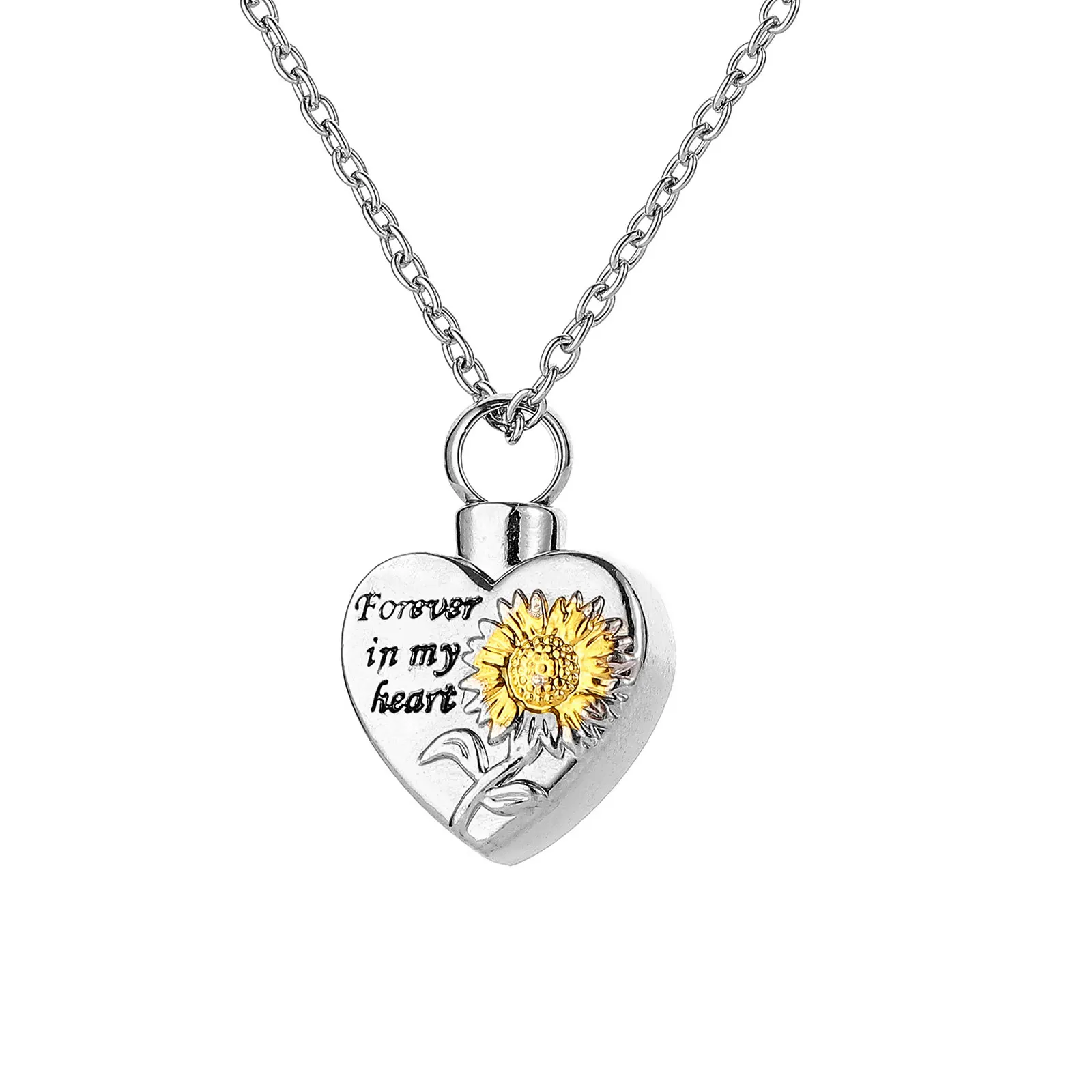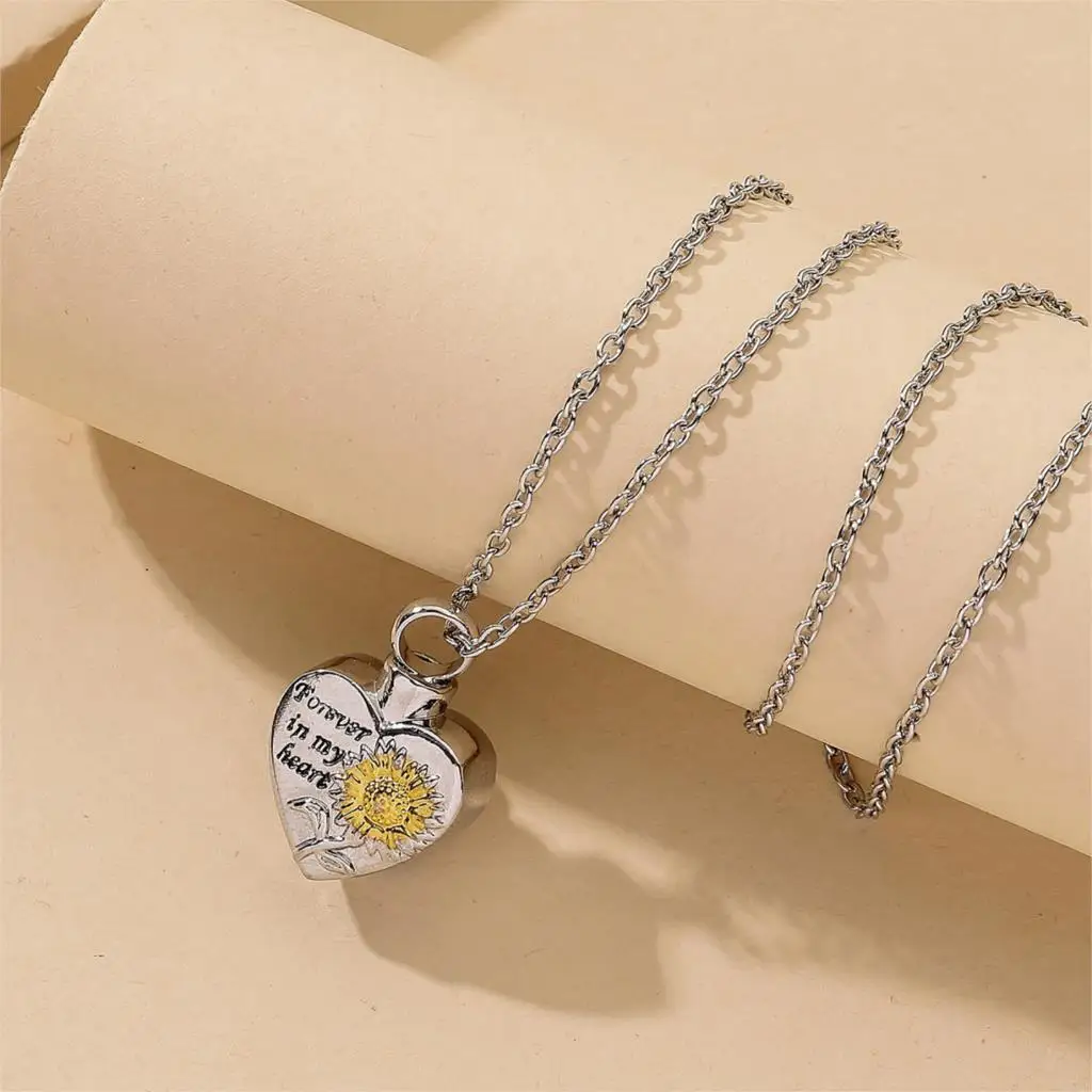 Дорин коробка модные кремации урна сердце кулон Подсолнечник ожерелье серебро Цвет металла для мужчин и женщин может открыть, ювелирные изделия в качестве подарка, 1 шт.
