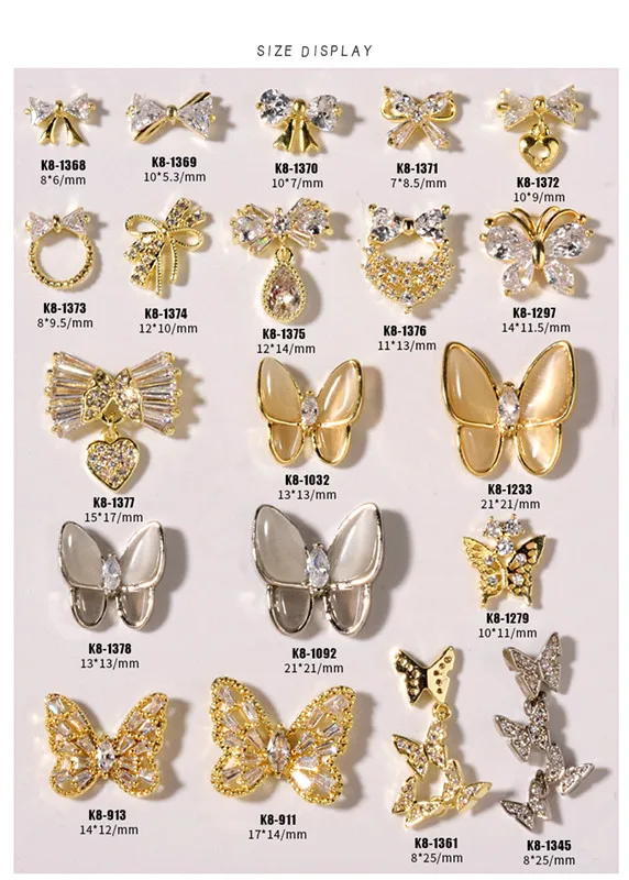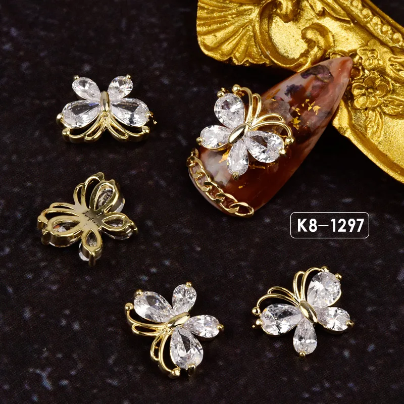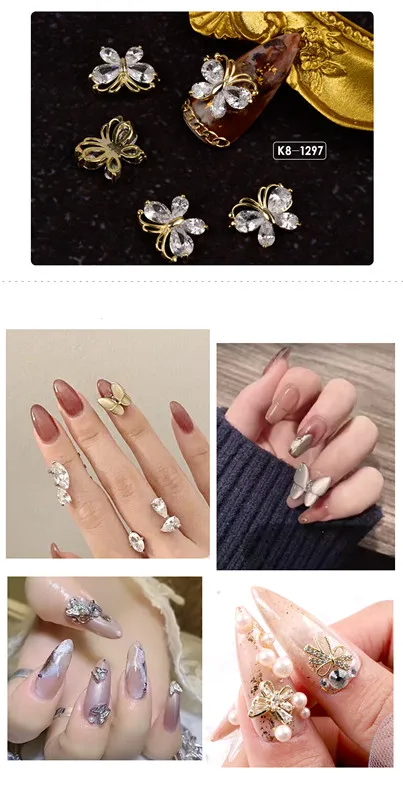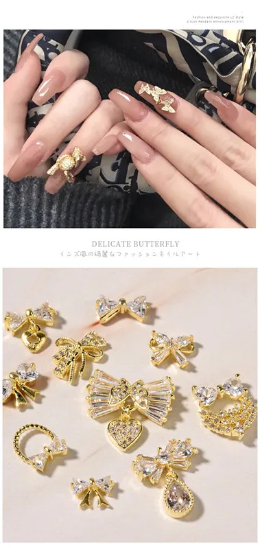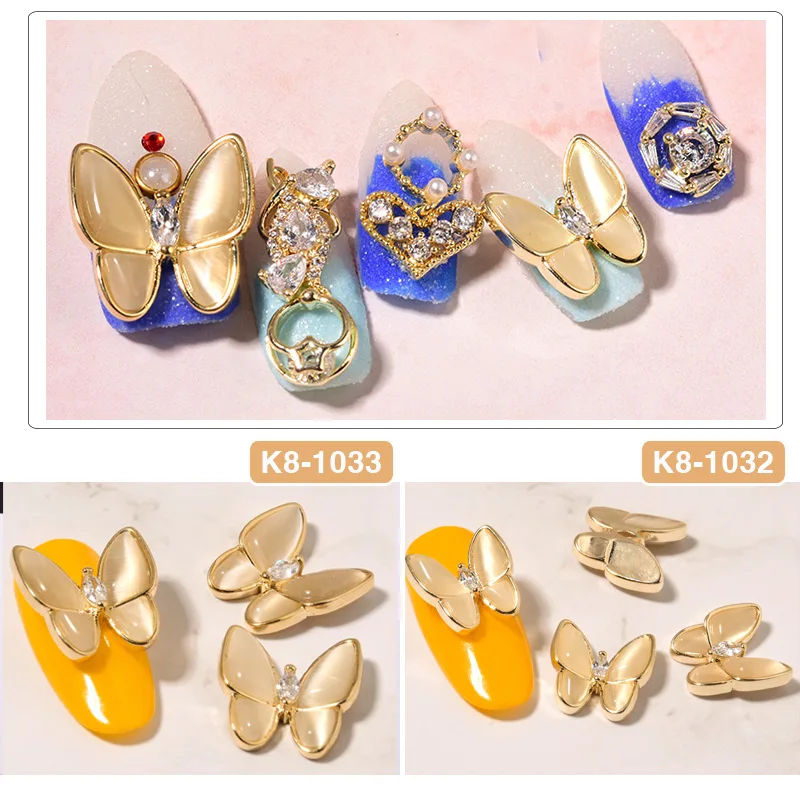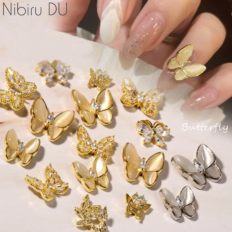 2 шт., золотые Переводные картинки с бабочками для дизайна ногтей, металлические подвески, маникюрные Стразы для ногтей