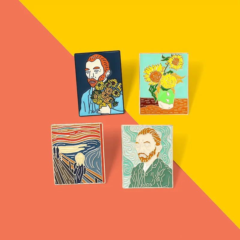 Эмалевые булавки Ван Гога с изображением подсолнуха и крика, броши ...