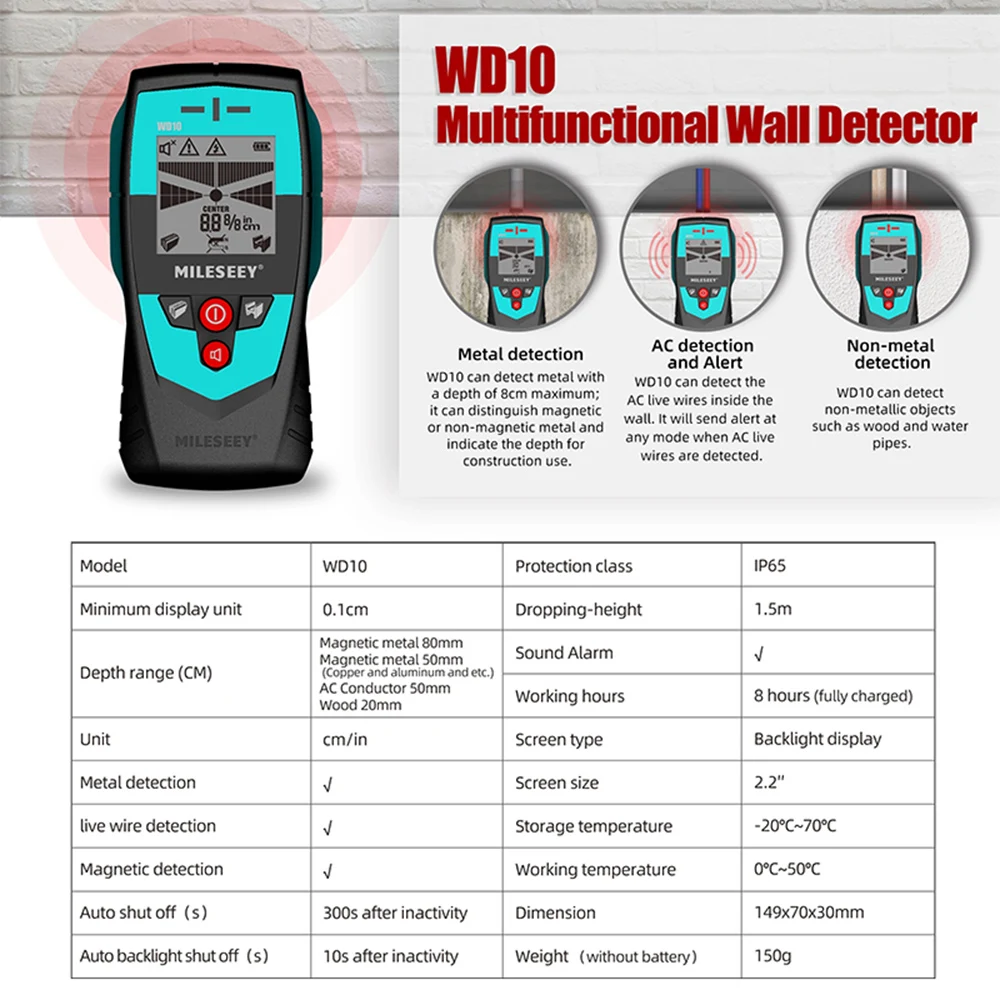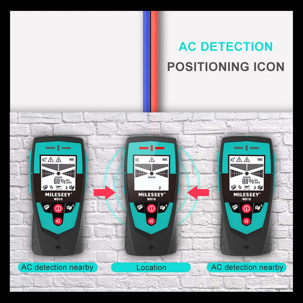 Детектор стен Mileseey Stud Finder, многофункциональный детектор стен с большим точным датчиком обнаружения переменного тока