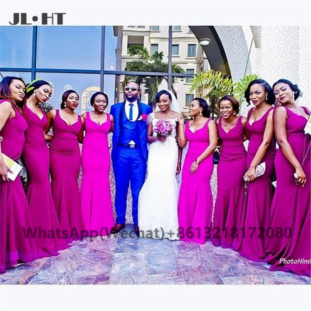 2021 южноафриканские фуксия платья подружки невесты с длинными лямками эластичные атласные африканские платья для свадебной вечеринки подружки невесты