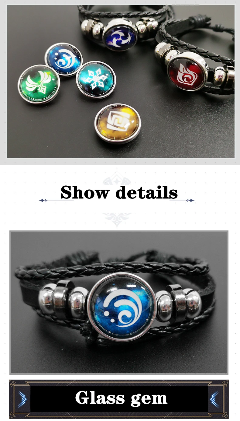 Название: элементы для косплея проекта, светящийся глаз Бога Источник: Genshin Impact Стиль: Аниме/игры Назначение: Косплей Аниме/реквизит для рождественской карнавальвечерние НКИ/детские игрушки, подарки на день рождения Размер: диаметр драгоценного камня 1,8 см. Длина браслета 18 + 6 см Материал: цинковый сплав и стекло драгоценный камень Компоненты: драгоценные камни и браслеты Пол: унисекс Подходит для людей: взрослых и детей Совершенно новый продукт Сделано в Китае