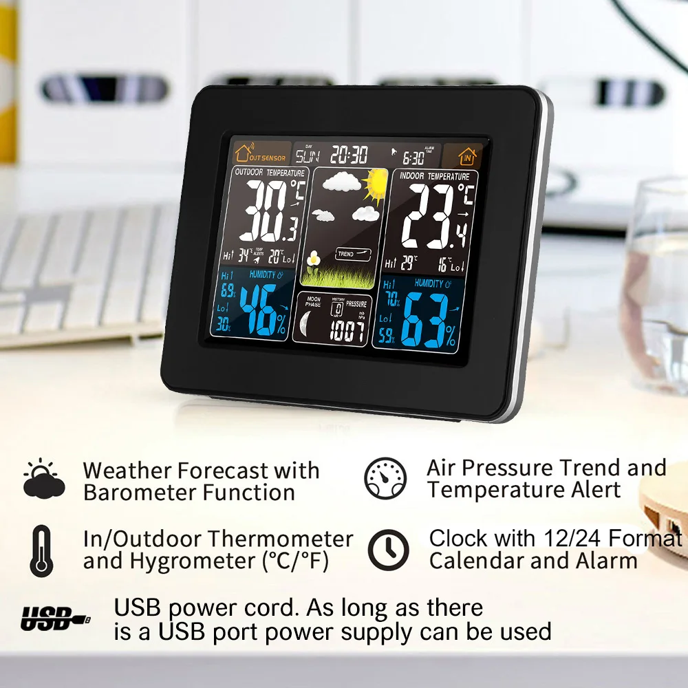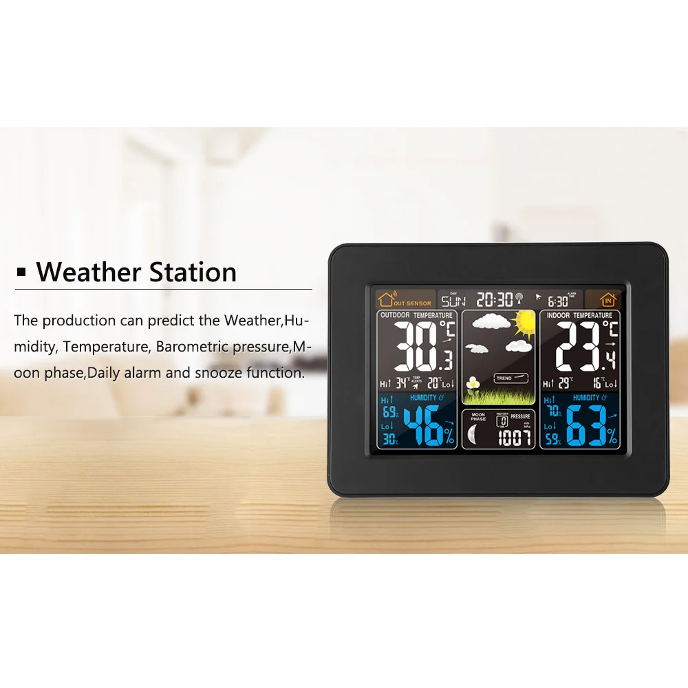 Беспроводная цифровая метеостанция с ЖК-дисплеем, термометр, гигрометр, будильник для прогнозирования погоды, монитор, часы для прогнозирования погоды