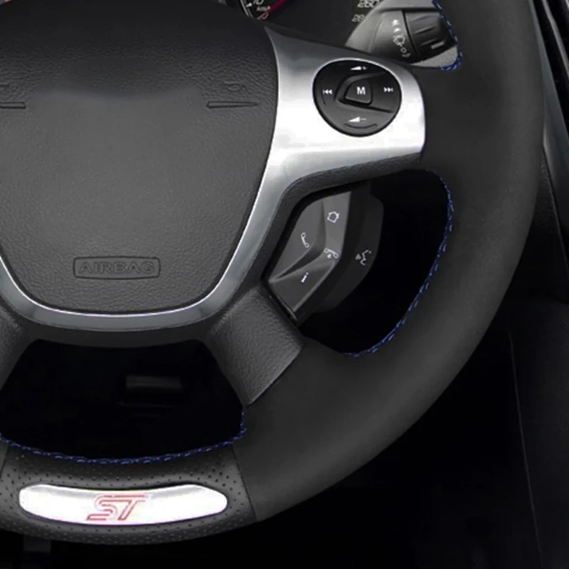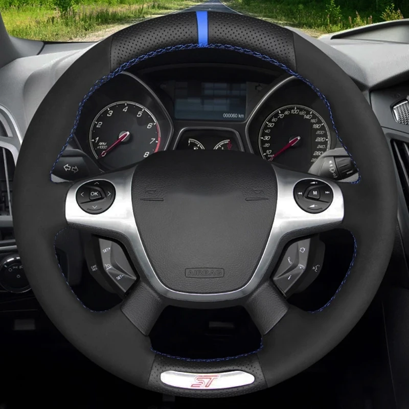 Чехол рулевого колеса автомобиля прошитая вручную мягкая черная натуральная кожа замша для Ford Focus 3 ST 2012 2013 2014