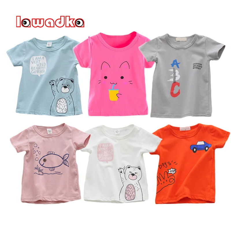 Lawadkaлетние футболки для маленьких мальчиков и девочек хлопковая одежда с короткими рукавами Топы, повседневная детская одежда, одежда возраст от 6 месяцев до 24 месяцев