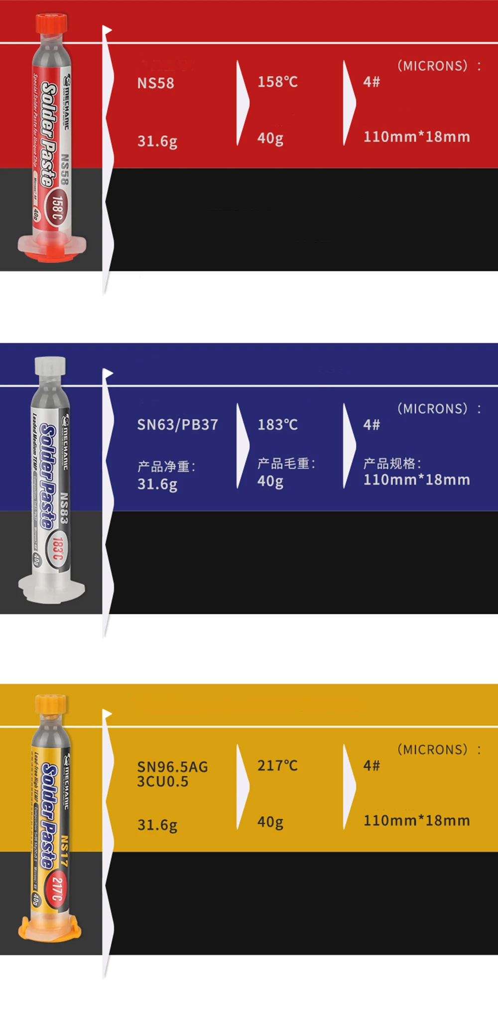 Mechanic 40g BGA паяльная паста без свинца с флюсом паяльная паста точка плавления 183 ℃ PCB ремонт шприц сварочный флюс