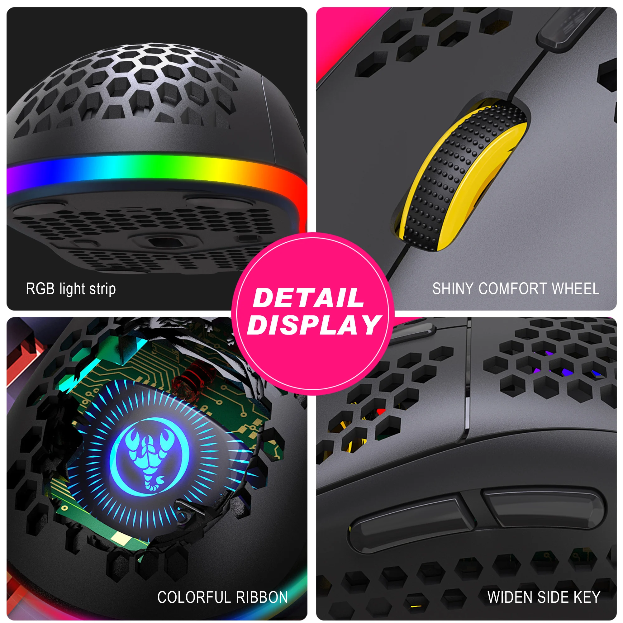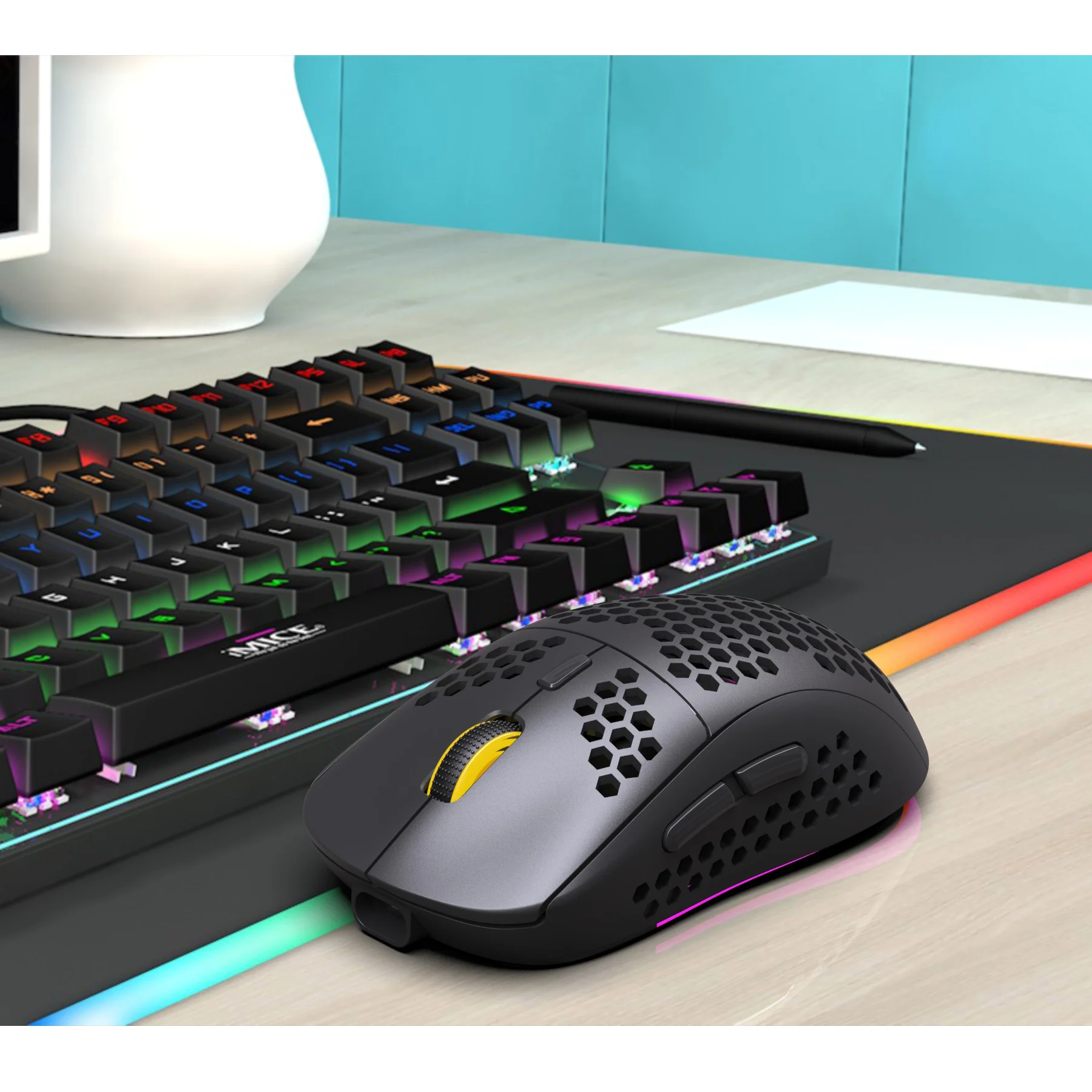 Технические параметры:1. 3 режима: 2,4G беспроводной + Bluetooth 3,0 + Bluetooth 5,02. Перезаряжаемая: Встроенная перезаряжаемая батарея 750 мАч3. Точное отслеживание: Профессиональная точность позиционирования IC4. Беспроводное приемное расстояние 10 м5. Пятискоростная конструкция регулировки DPI6. 10 миллионов раз дизайн звукового переключателя7. С использованием полого и красочного светящегося логотипа, который очень узнаваем8. Светильник: RGB marquee effect, до 6 светильник ing pattern designs, светильник можно выключить.