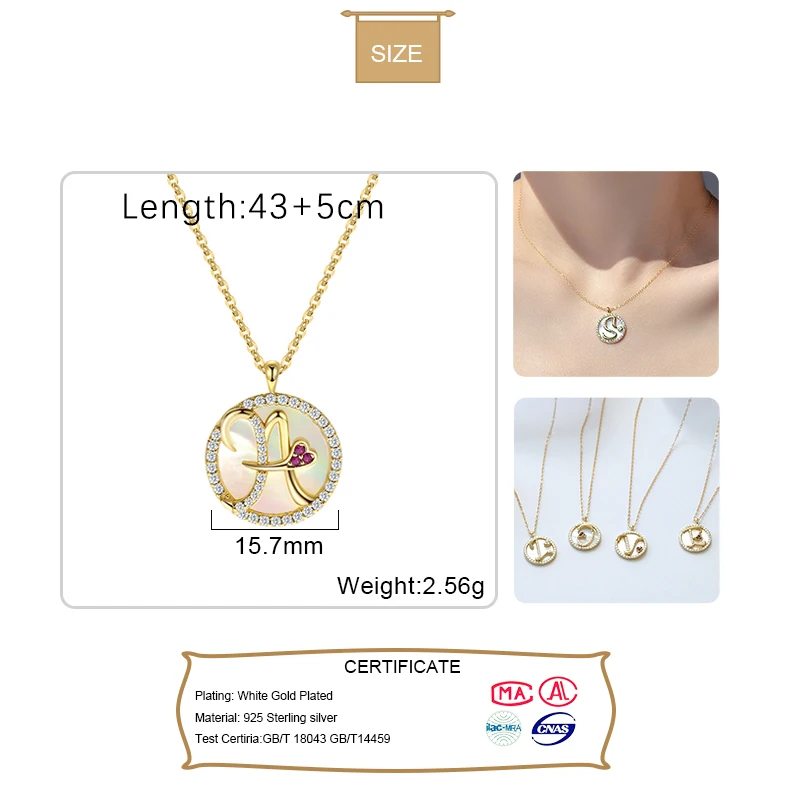 TrustDavis роскошное модное ожерелье из стерлингового серебра 925 пробы с подвеской из 26 золотых ракушек и букв CZ для женщин ювелирные изделия для свадебной вечеринки DA109