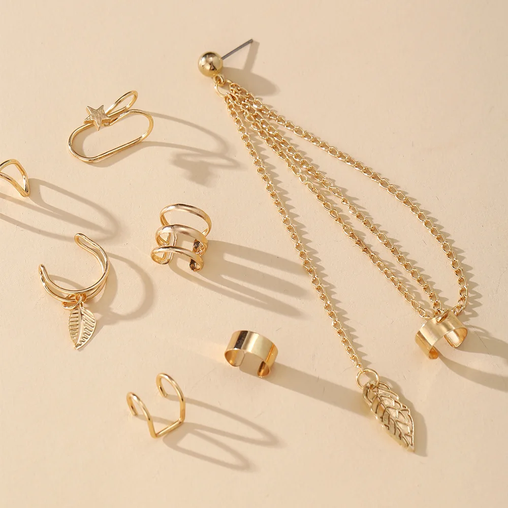 Модные поддельные пирсинг ушные манжеты серьги металлические листья серьги клипсы серьги для женщин с цепочкой серьги набор ювелирных изделий подарок