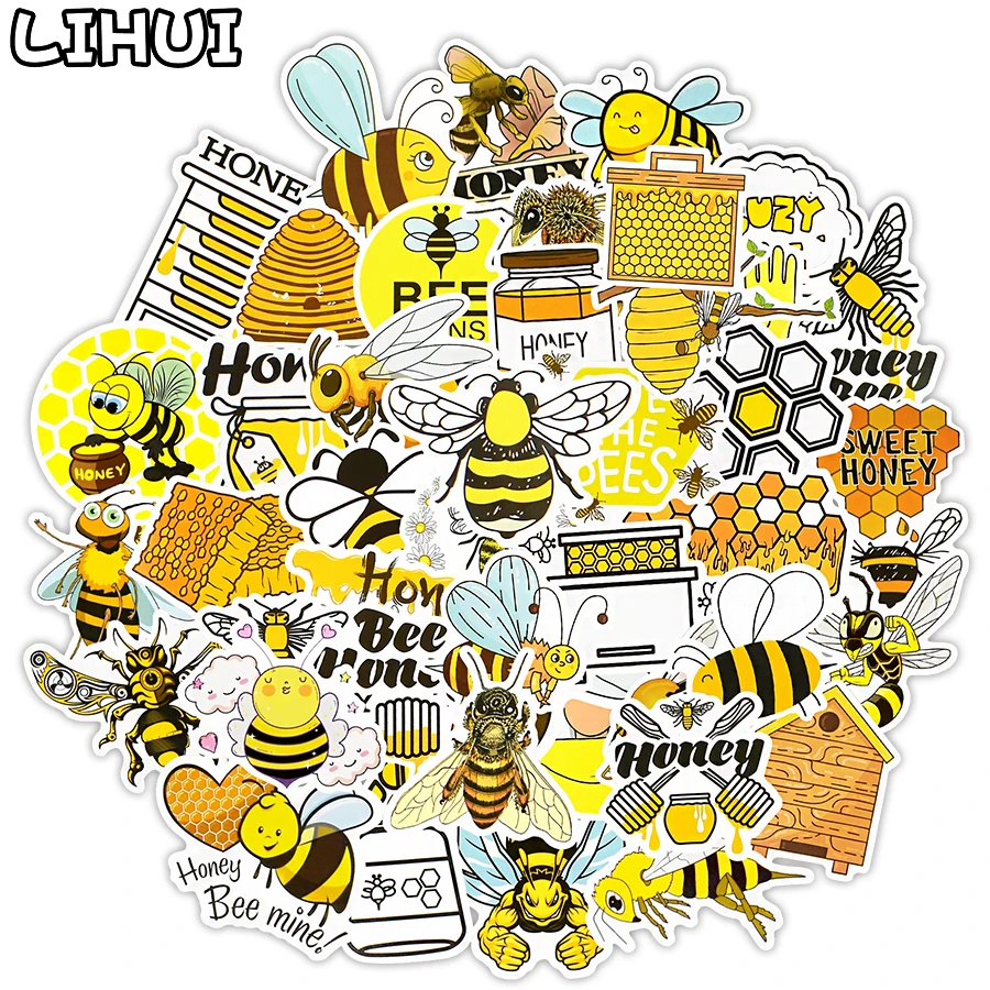 50 шт. милые наклейка пчела Игрушки для детей подарок мультфильм медовые Насекомые Животные наклейки для DIY ноутбук телефон холодильник чайник велосипед автомобиль наклейка