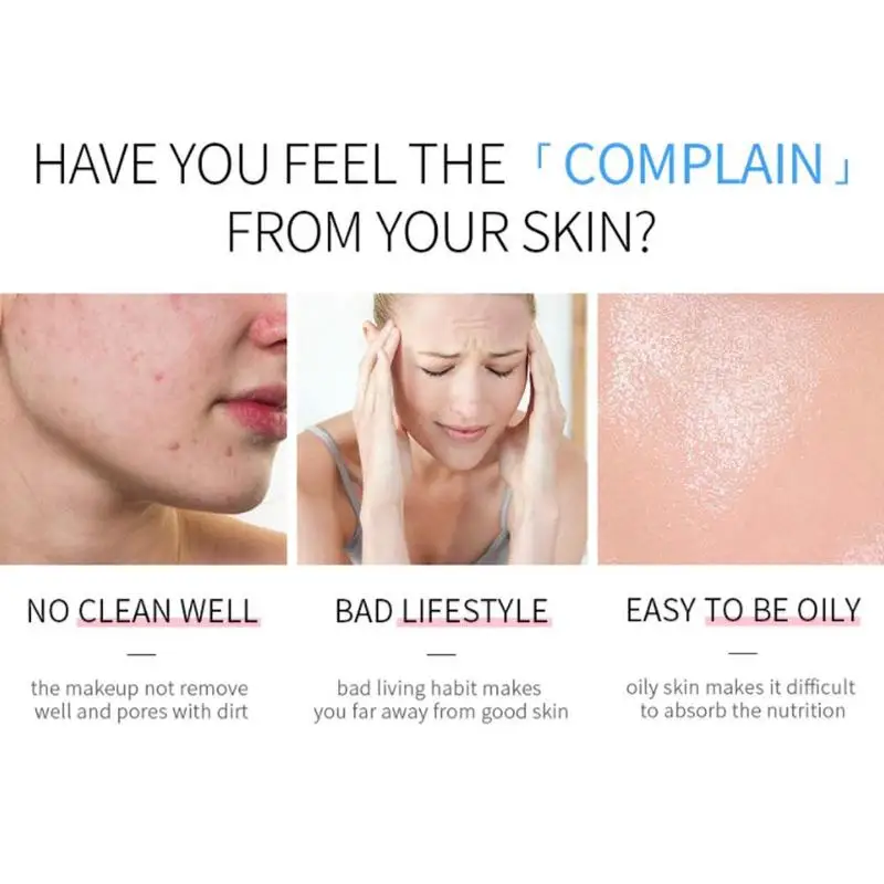 Вы чувствуете complaints жалобы на кожу 」 от вашей кожи? Не чистится хорошо: макияж не удаляет хорошо и поры с грязью плохой образ жизни: Плохая привычка к жизни делает вас далеко от хорошей кожи легко жирной: жирная кожа затрудняет впитывание питания