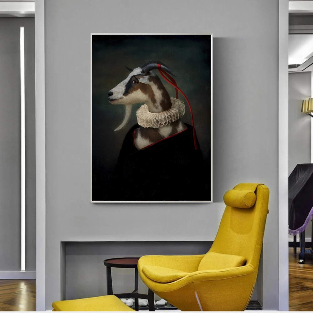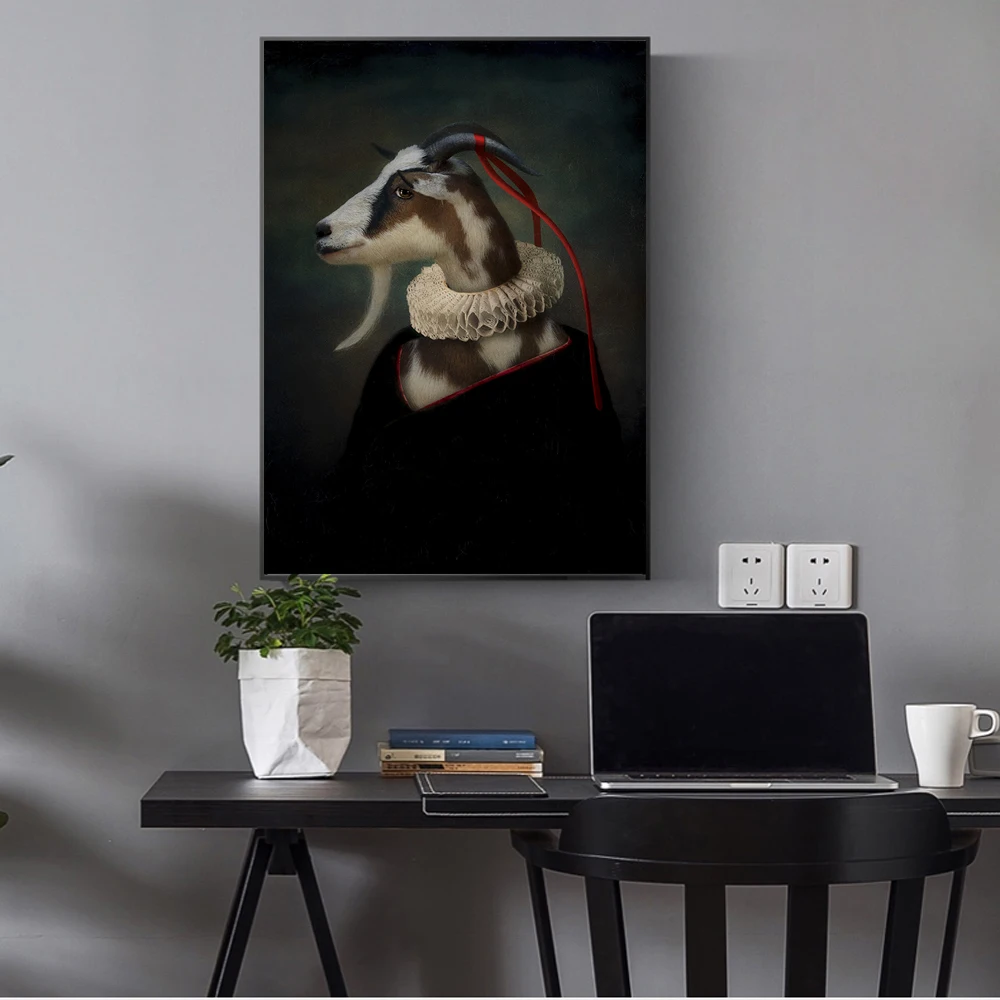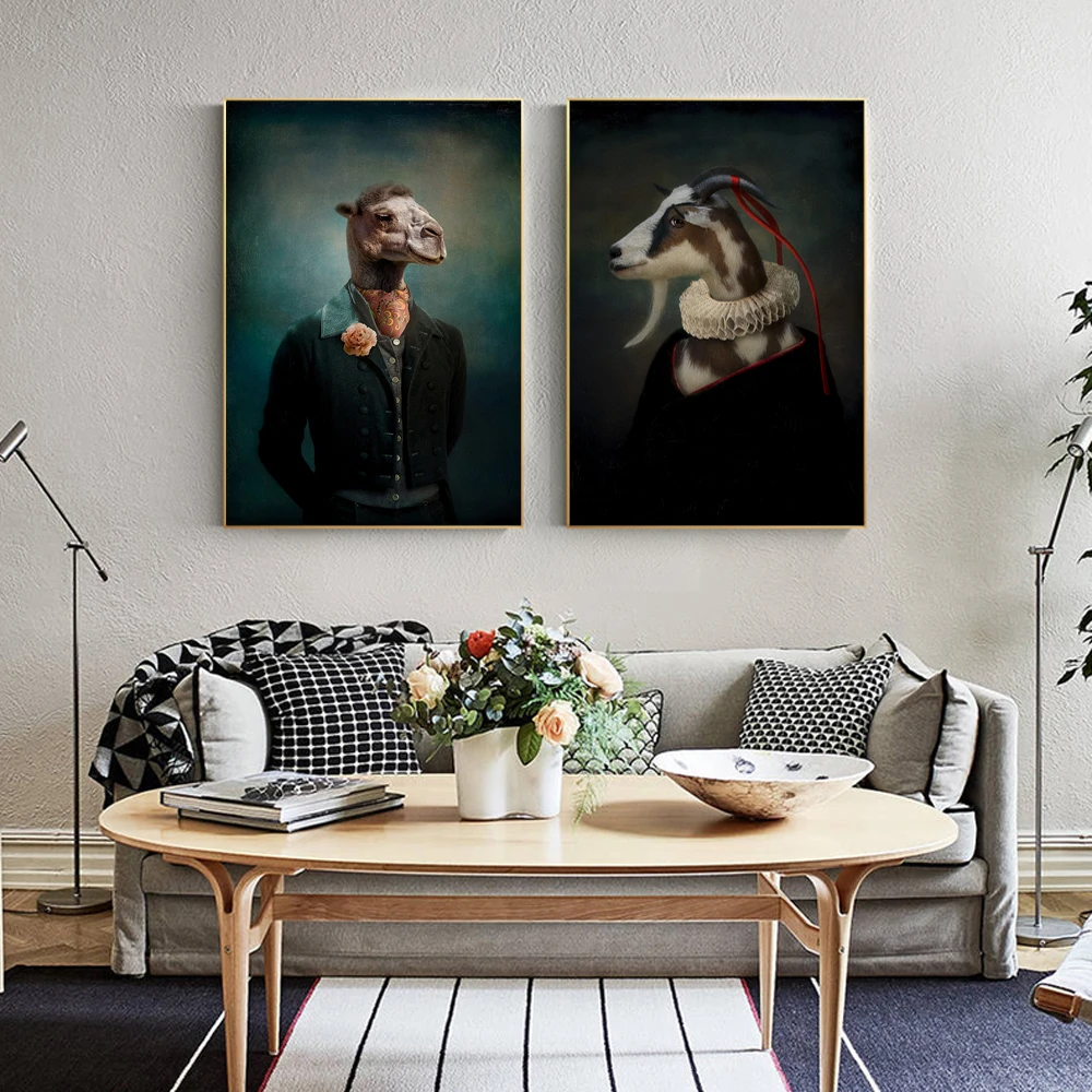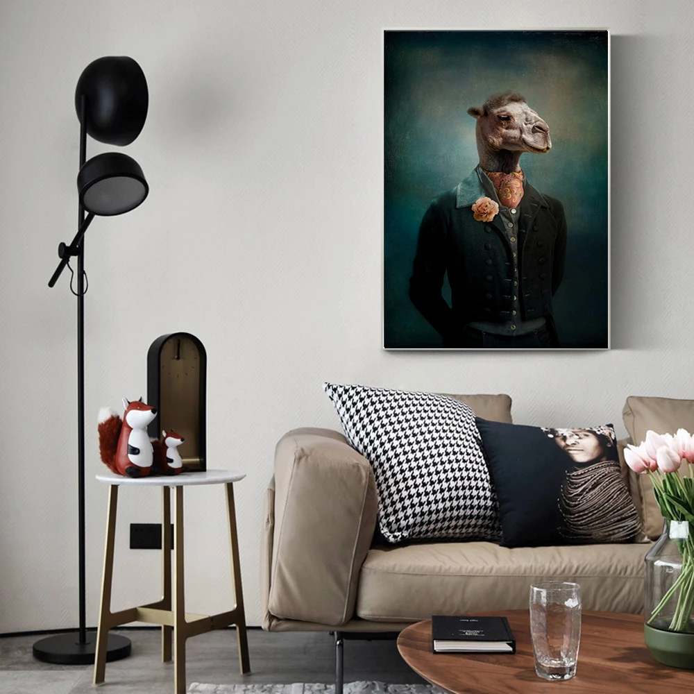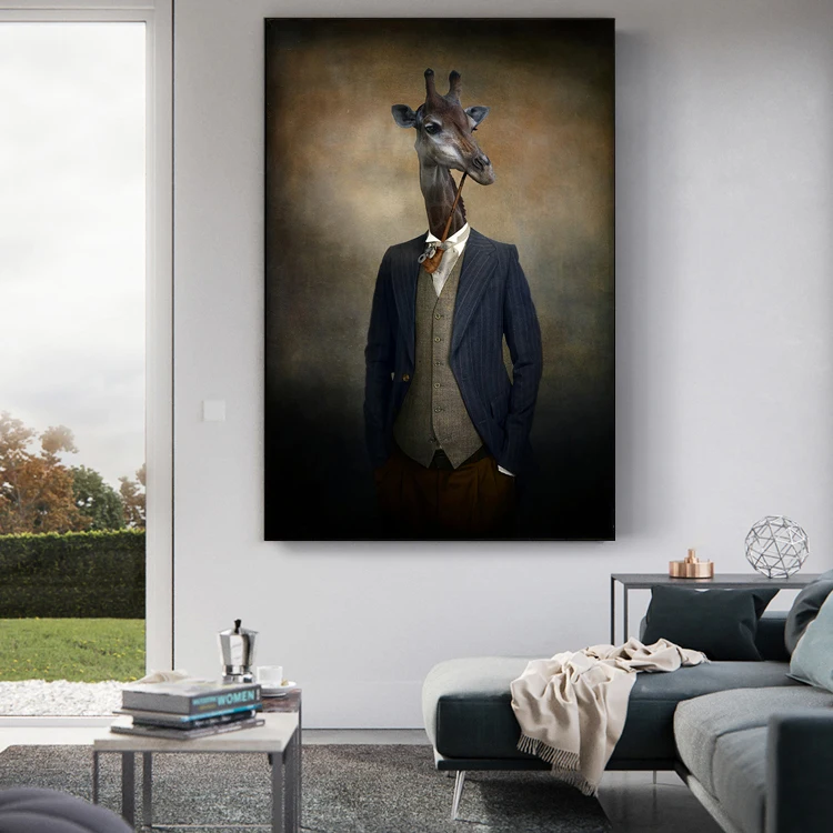 Картина на холсте в стиле ретро, жираф, верблюд, Коза в костюме