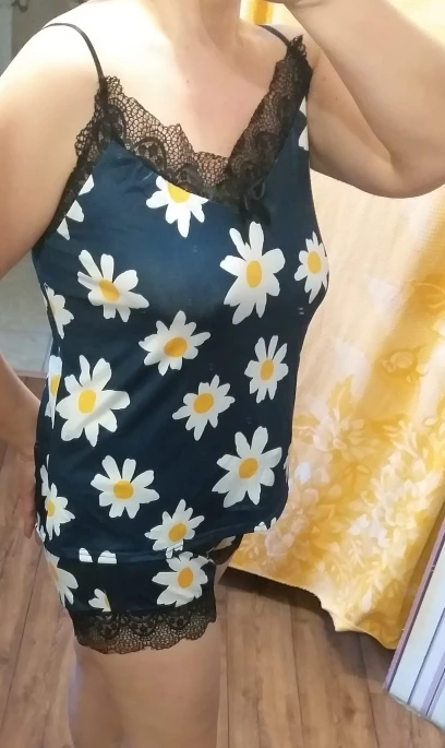 прикольная пижама, в размер. На размер 46 закала XL, села свободно, можно было меньше, шорты бы лучше смотрелись
