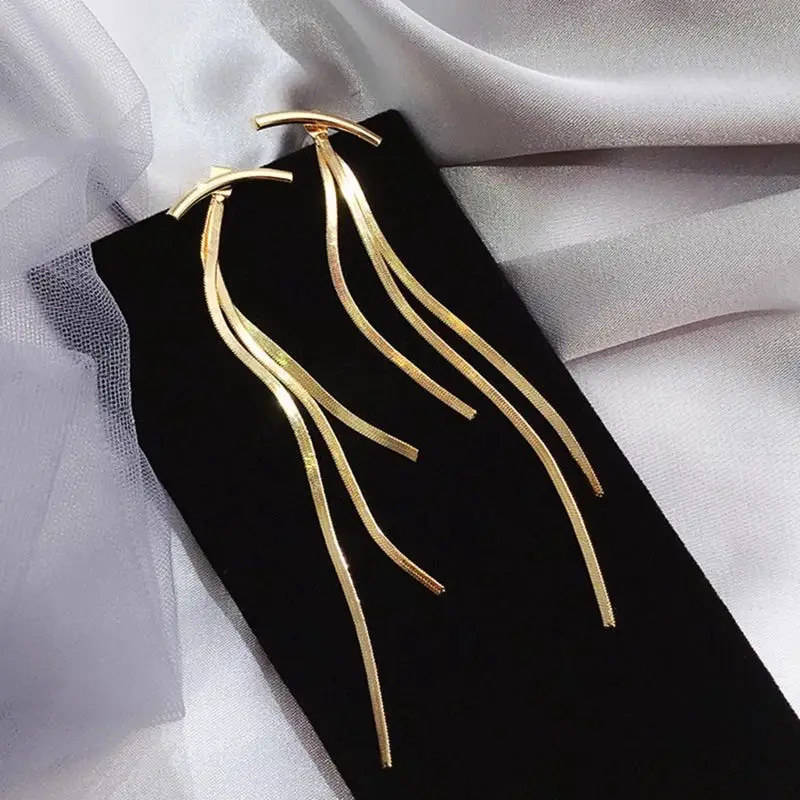 Женские длинные висячие серьги, Винтажные серьги золотого цвета, с кисточками, глянцевая дуга, геометрические, корейские, бижутерия, новинка 2021