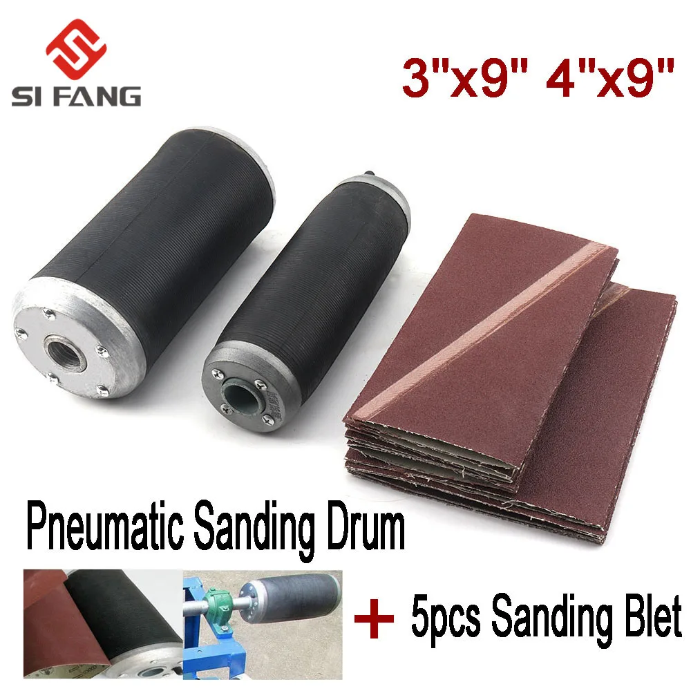 Пневматический шлифовальный барабан 3 дюйма x 9 дюймов, 4 дюйма x 9 дюймов, резиновая трубка + 5 шлифовальных лент для полировки обработки поверхности деревянных изделий