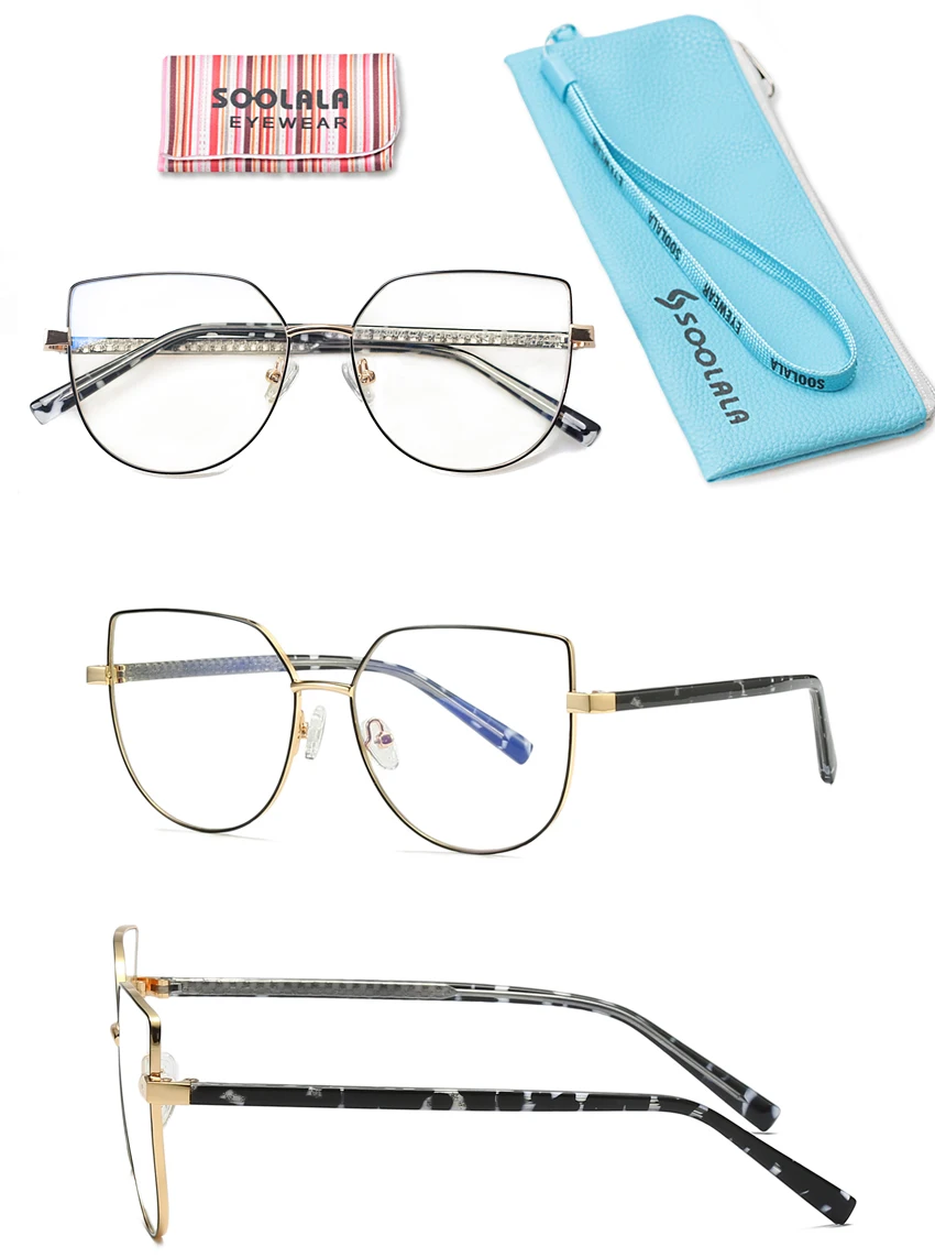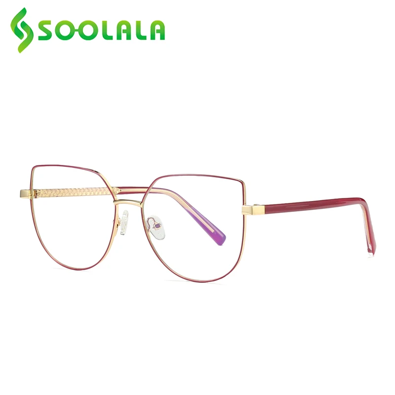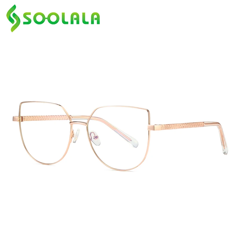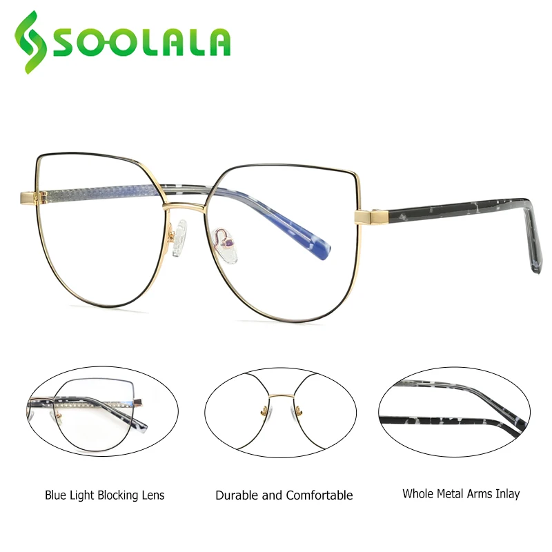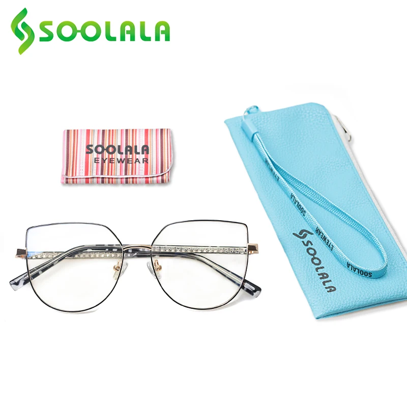 SOOLALA тонкие металлические солнцезащитные очки "кошачий глаз" украшен круглыми синими светильник блокировка очки для чтения Для женщин ретро очки с оправой для увеличительные пресбиопические очки