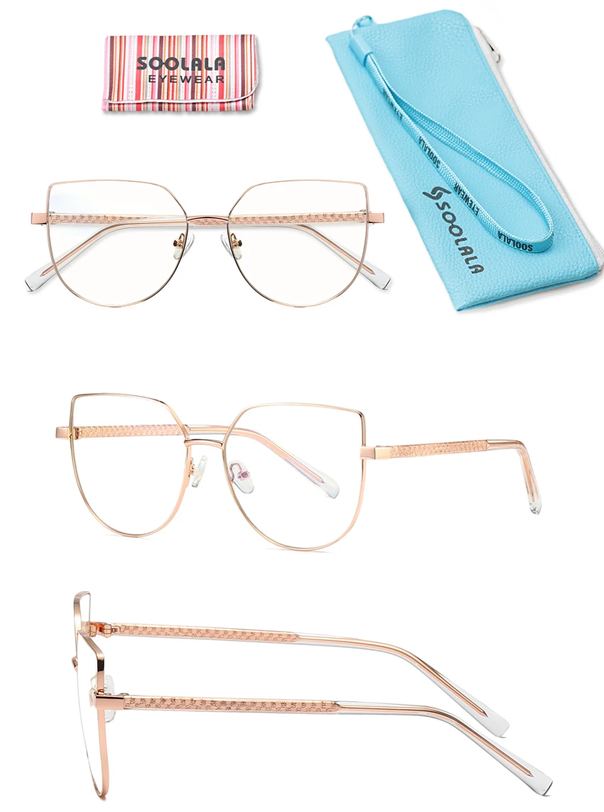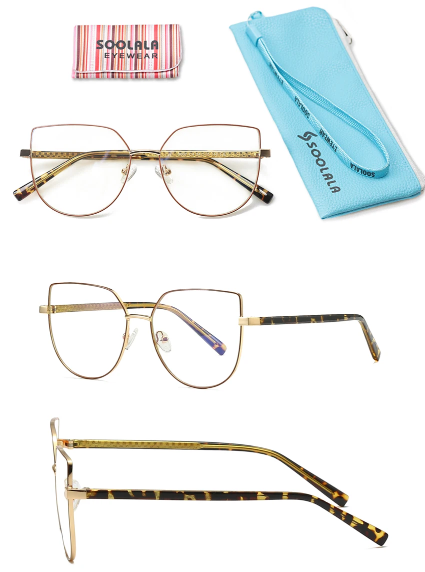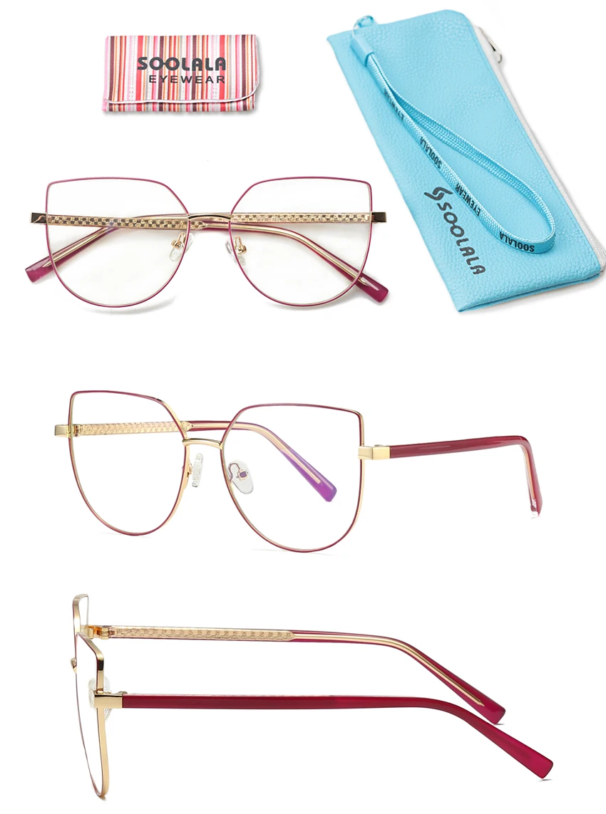 SOOLALA тонкие металлические солнцезащитные очки "кошачий глаз" украшен круглыми синими светильник блокировка очки для чтения Для женщин ретро очки с оправой для увеличительные пресбиопические очки