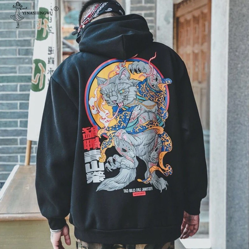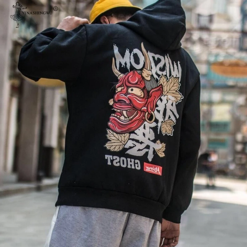 Модные мужские толстовки в стиле хип-хоп японский Повседневный Свитшот уличная одежда женский свободный утепленный пуловер Харадзюку мужская толстовка с дьявольским принтом