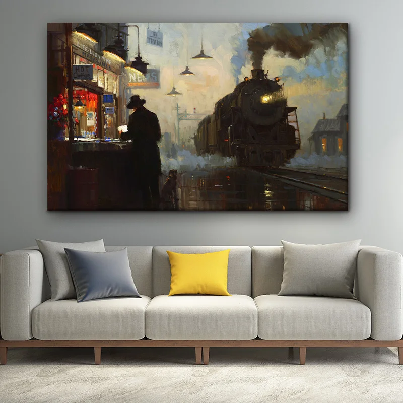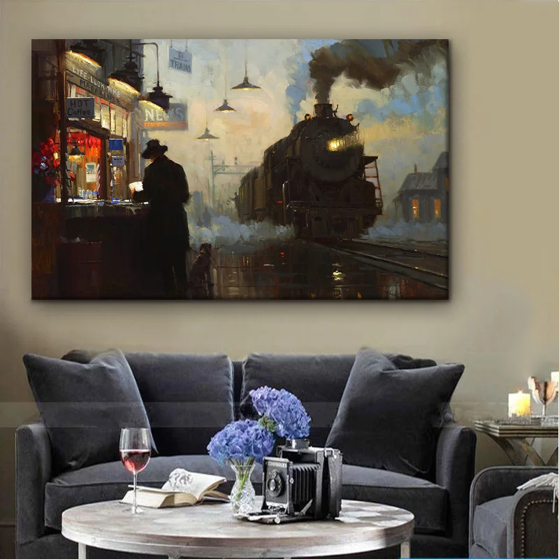 Классический железнодорожной станции киоск человек холст стены художника по поставке товаров для дома декоративная живопись для спальни декоративная живопись