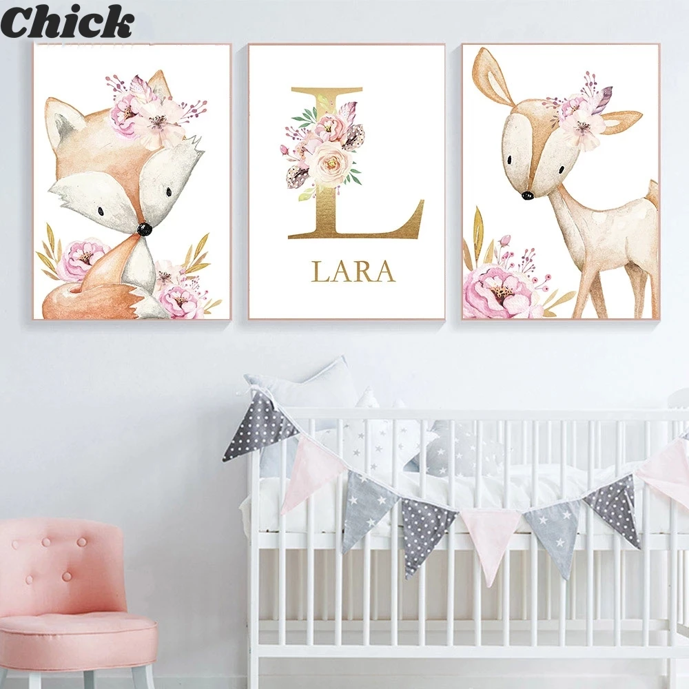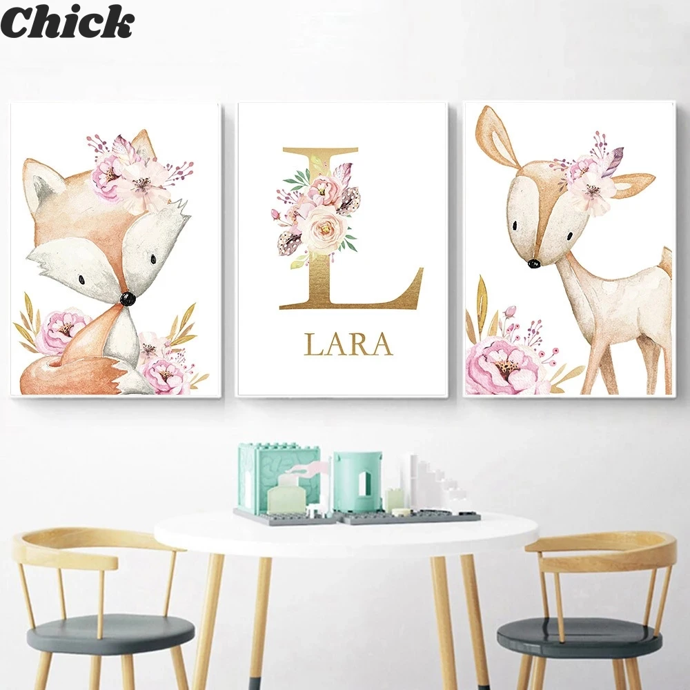 Картина на холсте с кроликом для девочек, постер с именем на заказ,...