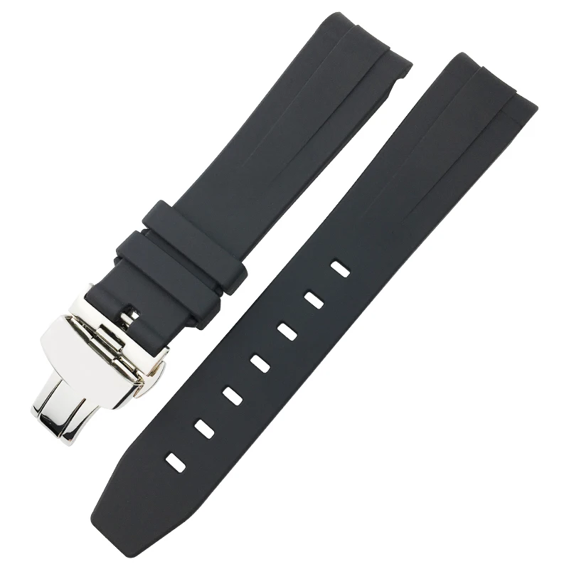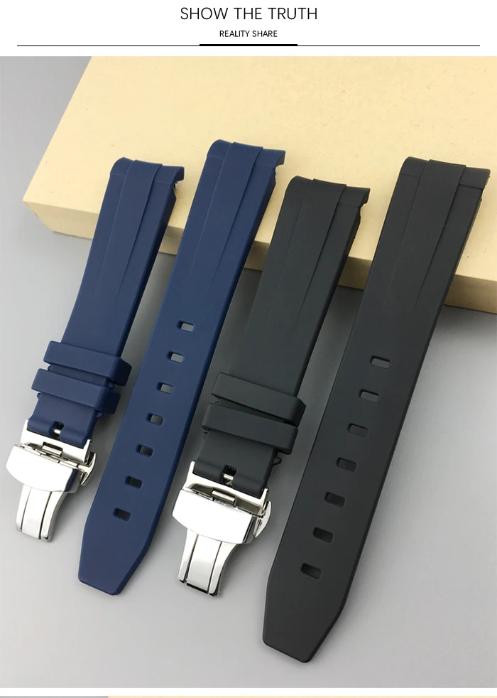 Ремешок для часов 20 мм, резиновый браслет из фтористого каучука, Ч...