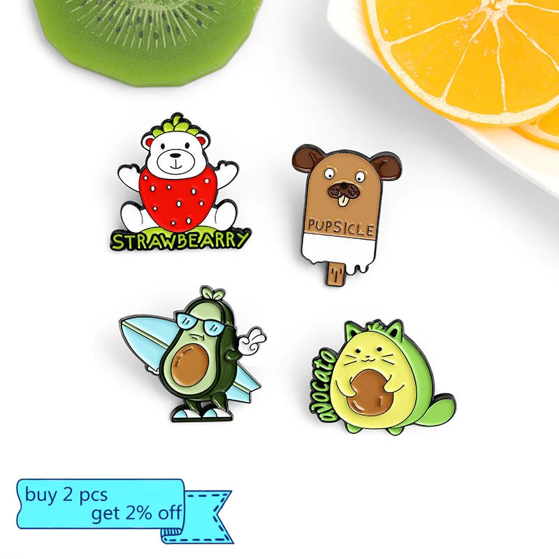 Изготовленный На Заказ Клубника Собака авокадо медвежьи эмали штырь...