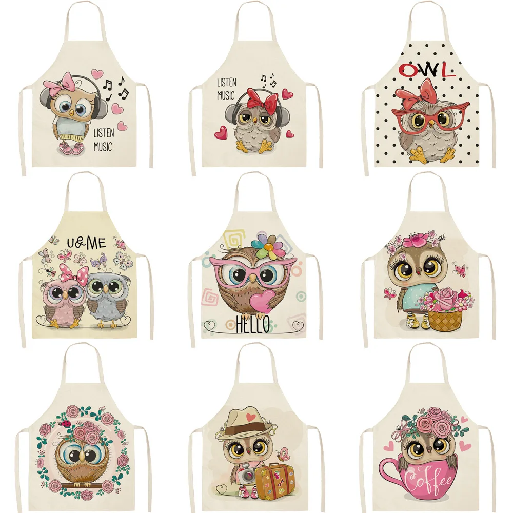 Сова Кухонный Фартук с узором без рукавов из хлопка и льна детская ...