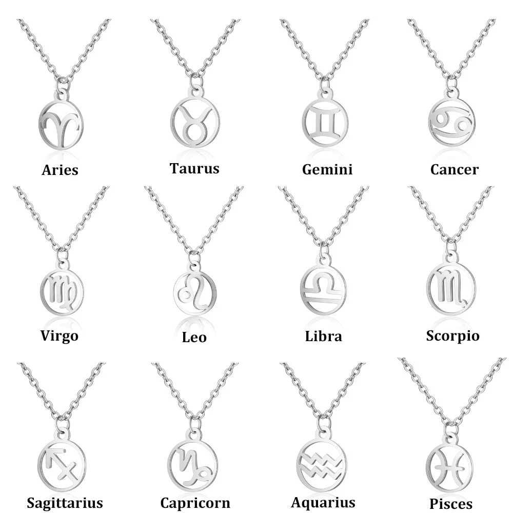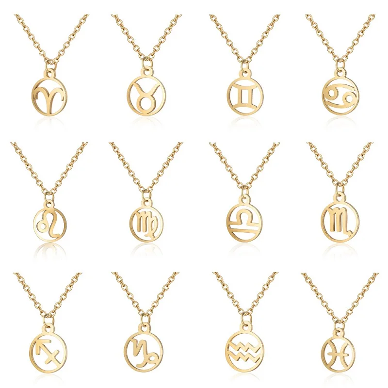 Модные золотые из нержавеющей стали, металлические буквы 12 знаков зодиака брелок ожерелья для женщин Созвездие цепочка колье ожерелье ювелирные изделия для женщин подарок
