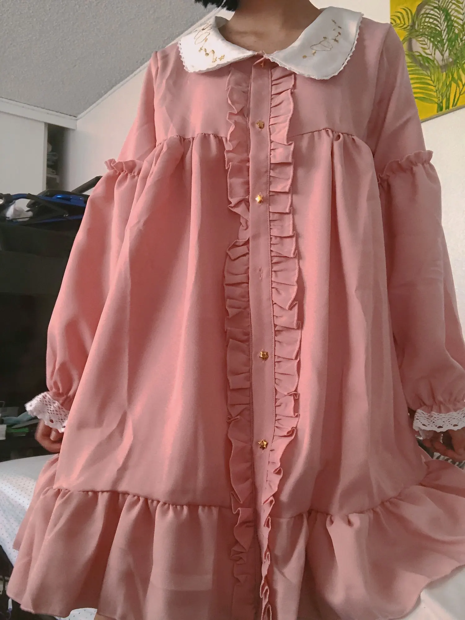Милое женское платье Элис в стиле Лолиты вондели, кружева с оборками, с отделкой, в японском стиле Харадзюку, с длинным рукавом, Кукольное платье, сказочные платья