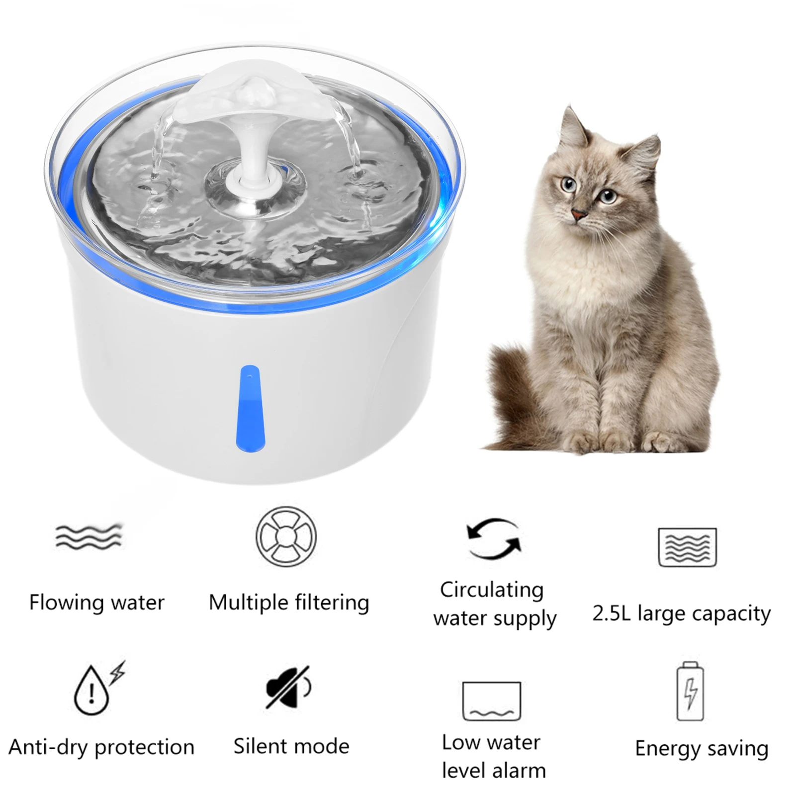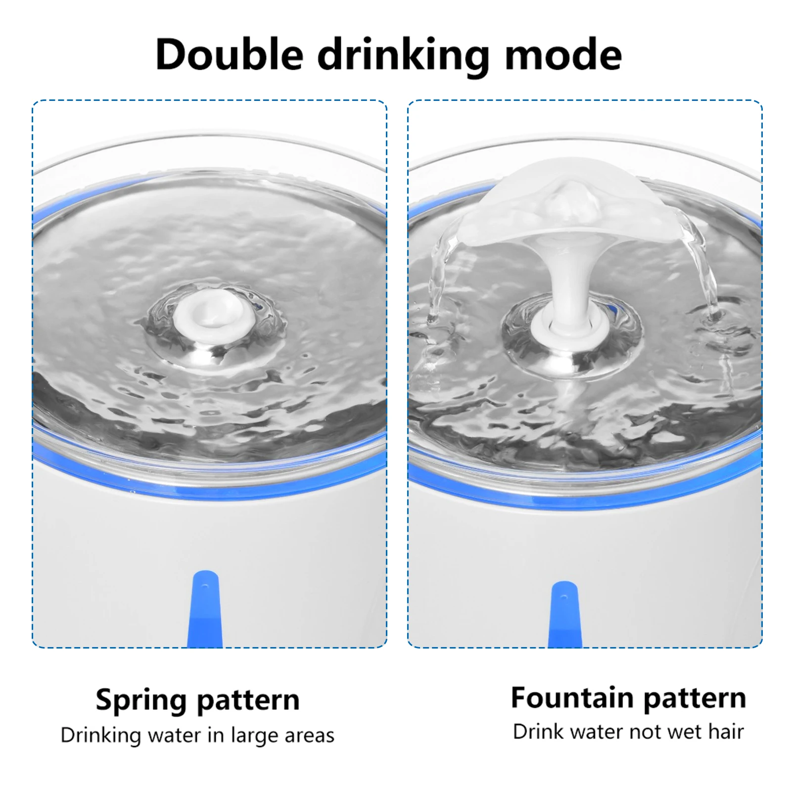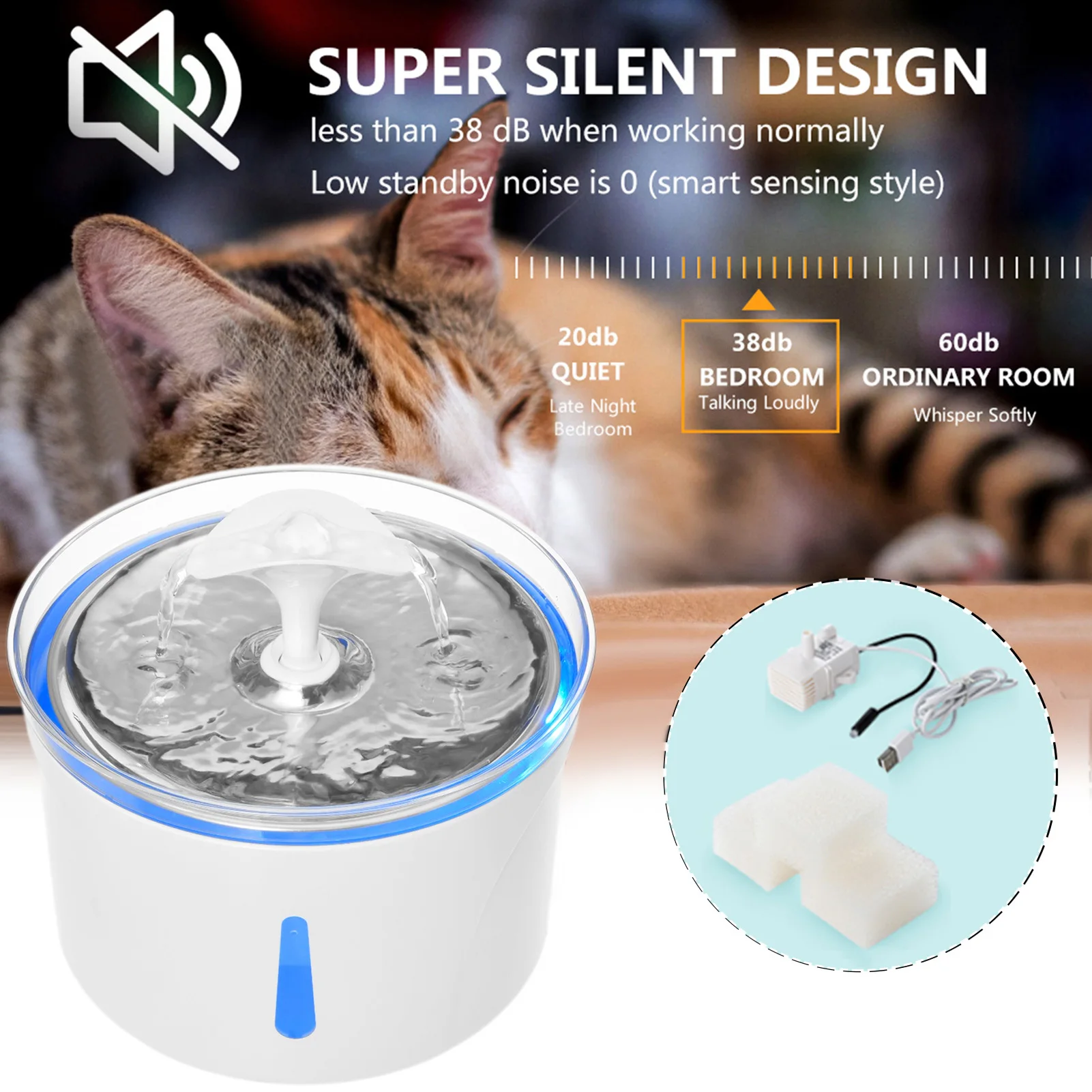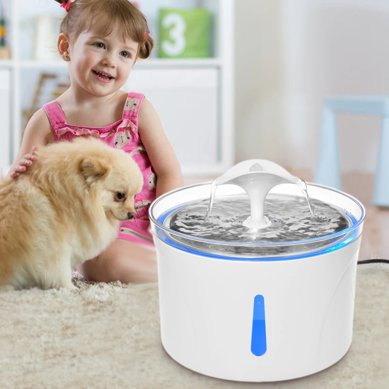 1. Дозатор воды для домашних животных из нержавеющей стали: струящийся фонтан очаровывает животных и не пугается, поощряя домашних животных пить больше воды. 2. Высокоэффективная система фильтрации: включает 1 * фильтр хлопок и 3 * фильтр для водяного насоса хлопок, многократная Очистка системы s может очистить и смягчить воду, при фильтрации волос, осадков и примесей. 3. Безводное выключение с функцией светодиодный: Автоматическое отключение без воды, безопасный, светодиодный светильник, синий светильник нормальный, красный светильник означает нехватку воды и отключение питания, напомните владельцу, чтобы добавить воду вовремя, кошки и собаки могут безопасно пить воду ночью. 4. Визуализированный дизайн уровня воды: вы можете проверить уровень воды питьевого фонтана в любое время и заполнить воду вовремя. 5. Ультра-тихий и легко чистится: его работа ультра-тихая, не нужно беспокоиться о том, что вы и ваш питомец отдыхаете, легко разбираются и моются. Упаковочный лист: 1 * диспенсер для воды 1 * USB водяной насос 1 * Фильтр из хлопка1 * носик