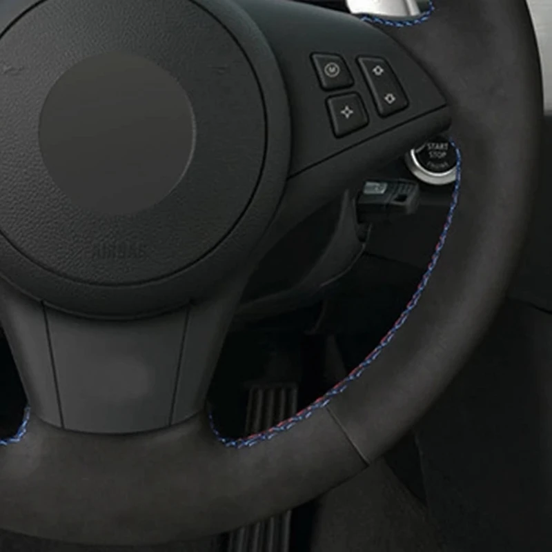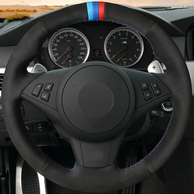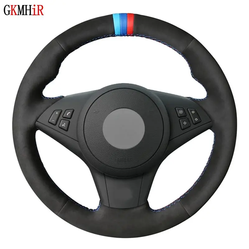 Мягкая черная замша DIY ручной работы чехол рулевого колеса автомобиля для BMW M5 E60 E61 (универсал) 2005-2010 M6 E63 (купе) E64 2005-2010