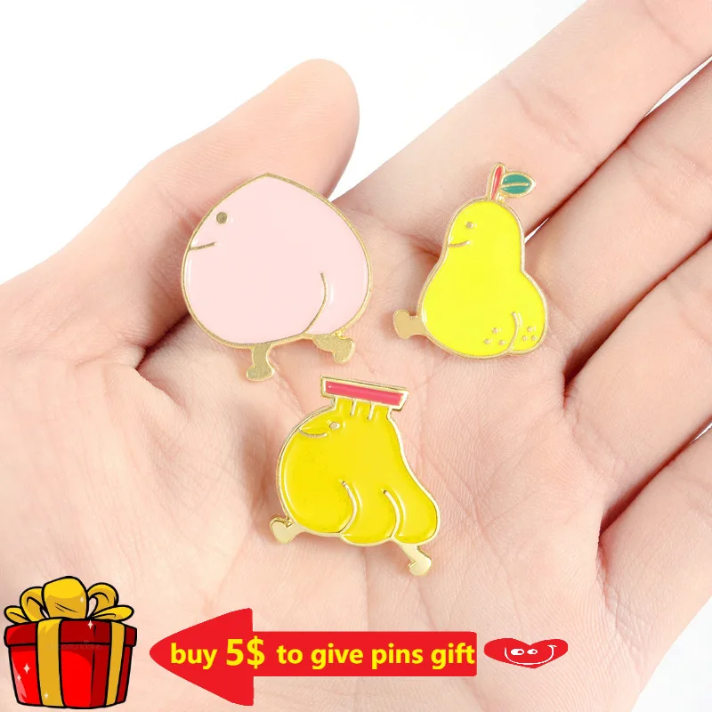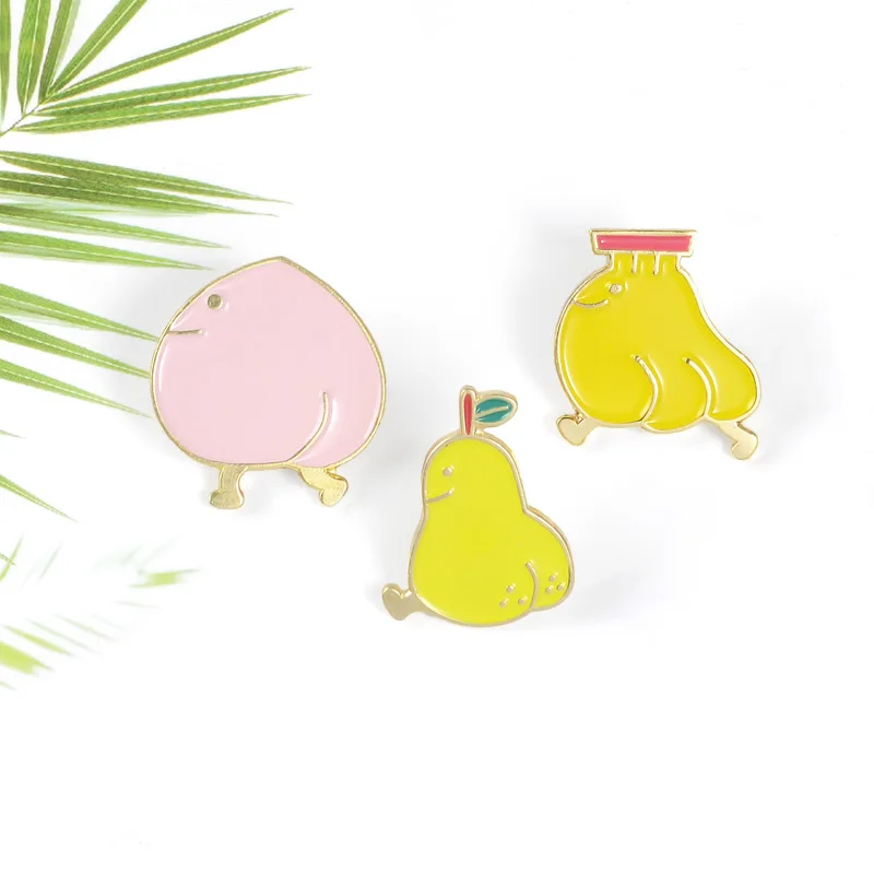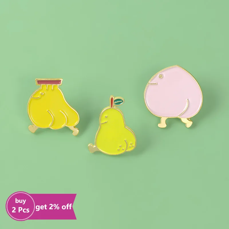 Эмалированная булавка в виде цыпленка с фруктами, оптовая продажа на заказ, булавка в виде груши, банана, персика, маленькая булавка, мультяшный значок, ювелирные изделия, подарок для друзей