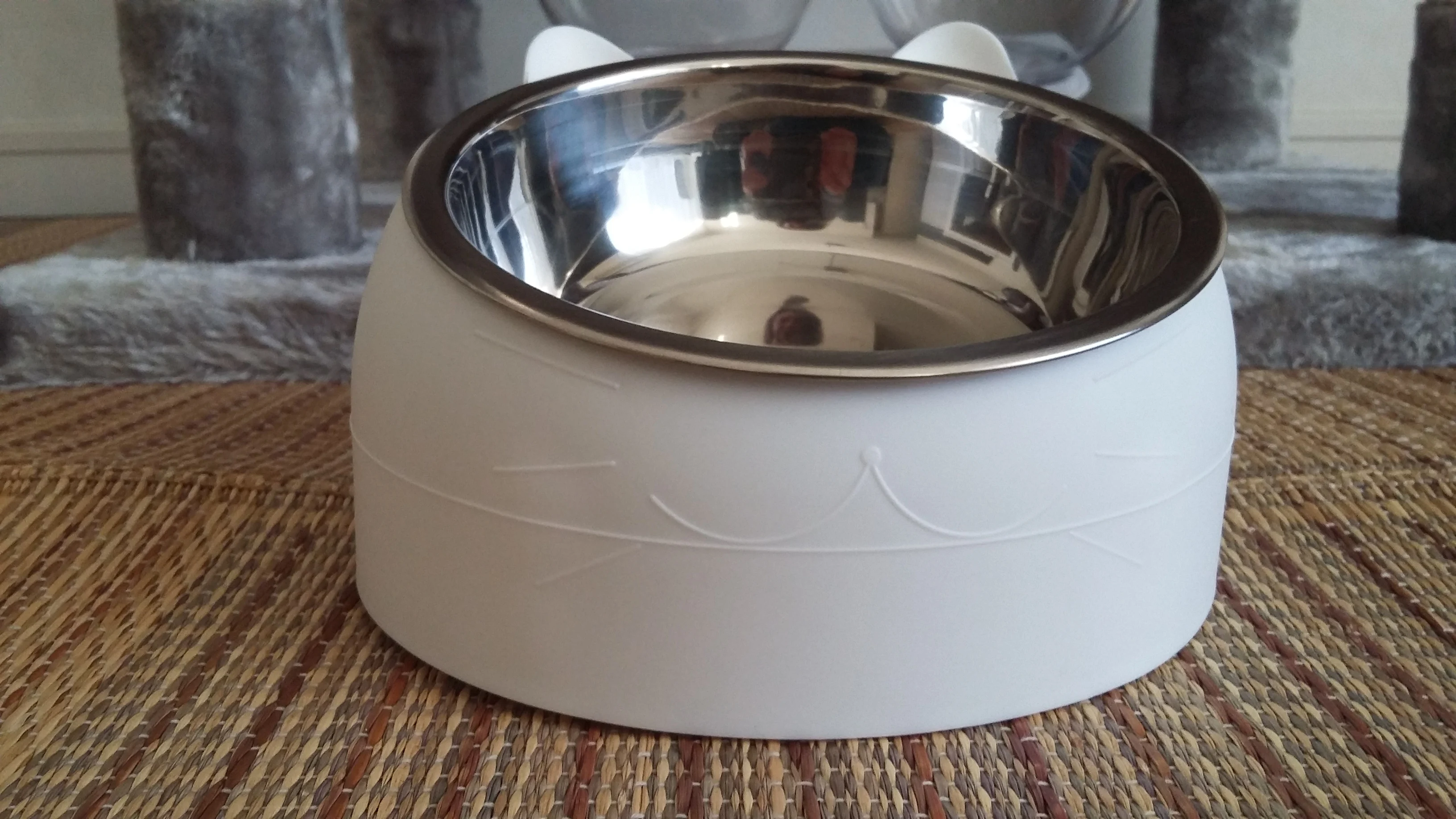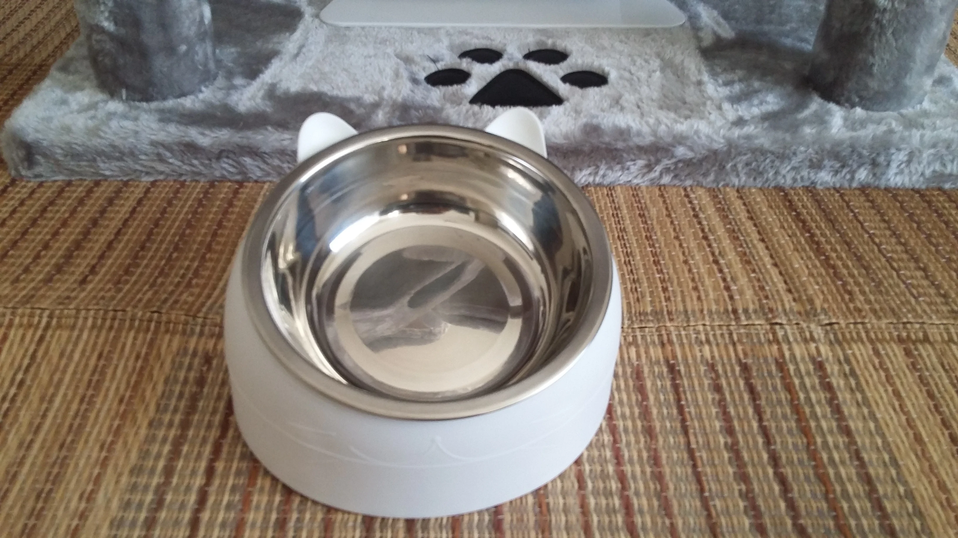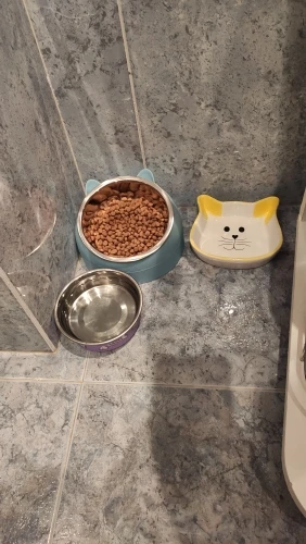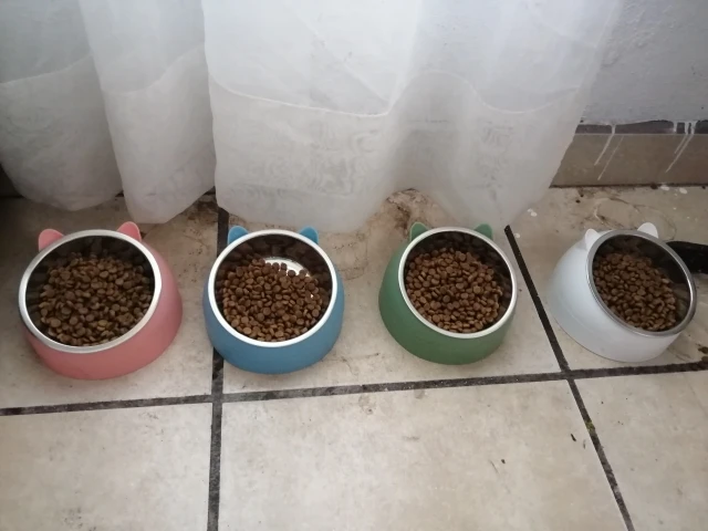 Тарелка красивая, немного больше, чем я ожидал. Как неудобства, сказать, что он очень легкий и не имеет никакого типа противоскользящего основания, поэтому он движется, когда кошка ест, Я также наблюдал за использованием, что с наклоном достаточно еды падают на землю.