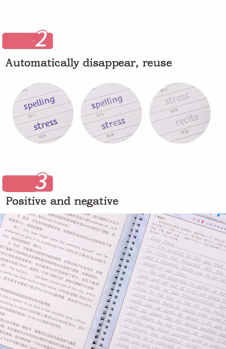Многоразовый тетрадь для практики с желобом для обучения каллиграфии, английскому алфавиту, можно использовать повторно, 3 шт.