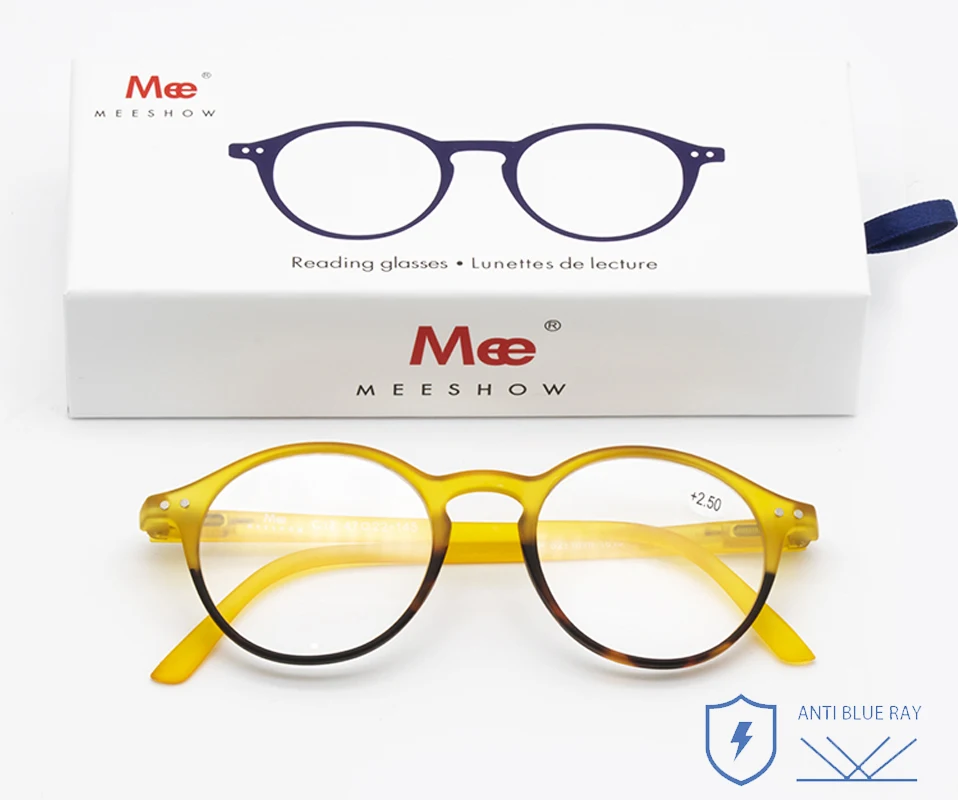 MEESHOW синий светильник Блокировка мужские очки для чтения, женские стильные очки модные Рождественская Пышная юбка-американка, подарок для любимой, гипоаллергенно Он украшен круглыми синими светильник Lensreaders