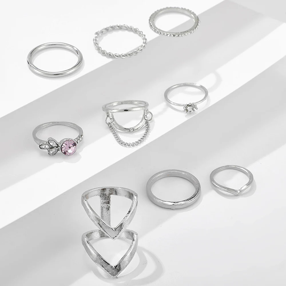 Набор колец на палец с кристаллами 9 шт.лот, тонкая цепочка с кисточками, ювелирные изделия для женщин