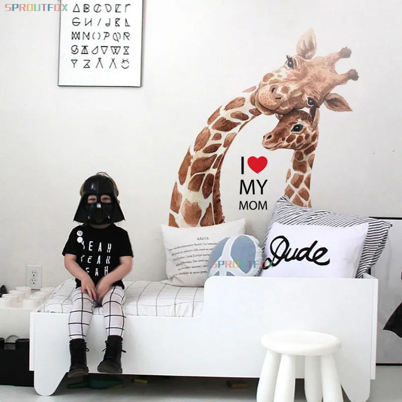 Настенные Стикеры с жирафом и надписью I Love You Mom, домашний декор для детской комнаты, милые животные, виниловые художественные Плакаты для детской комнаты