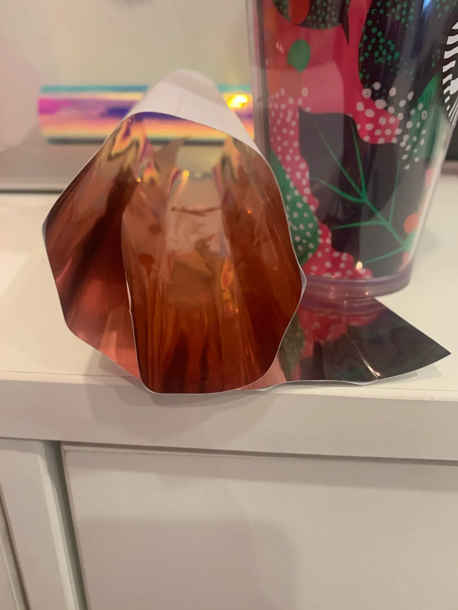 Не все винил можно использовать, так как он был сморщен, но после 15 см это нормально. Это также не тот цвет с обеих сторон. Это розовое золото с одной стороны и серебро с другой, поэтому не подходит для проектов акриловых брелоков. Отлично подходит для кружек и т. Д. Или всего, что не требует зеркального отображения. Найдете другие вещи, которые с ними сделают.