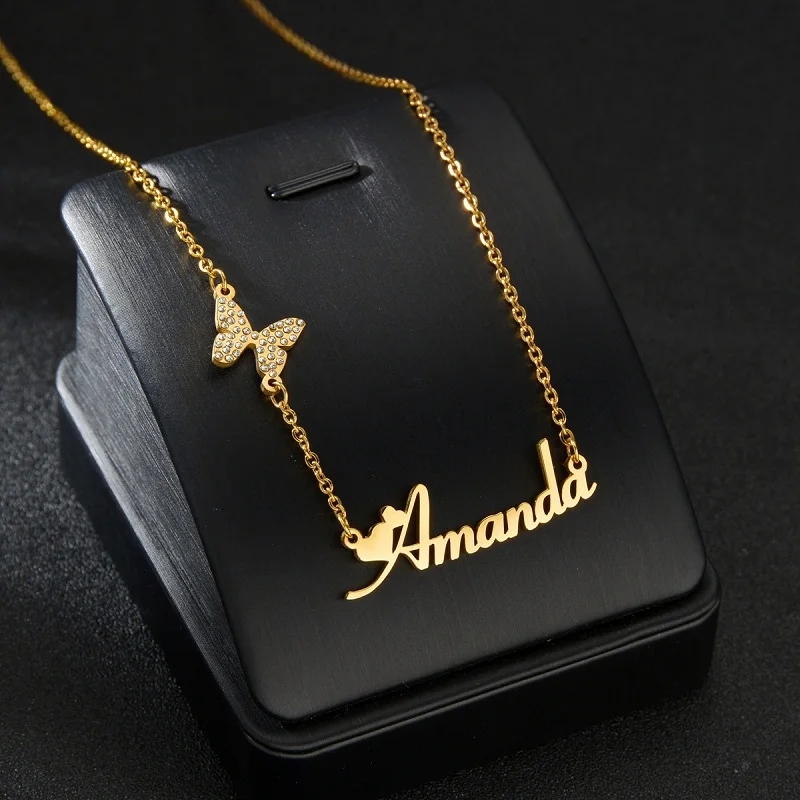 Ожерелье с подвеской в виде бабочки, сердца, снежинки, ожерелья с индивидуальной табличкой из нержавеющей стали, персонализированные ювелирные изделия