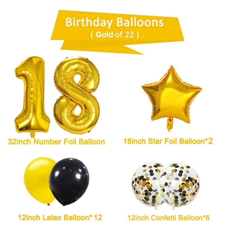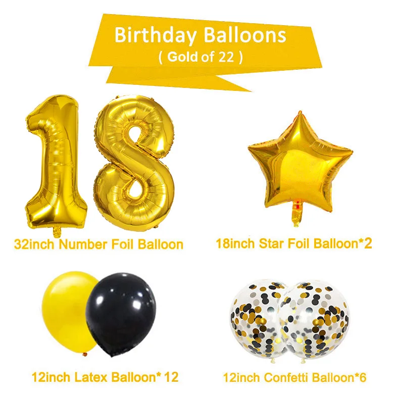 Воздушные шары ко дню рождения, 38 шт., количество 18, 18, с днем р...